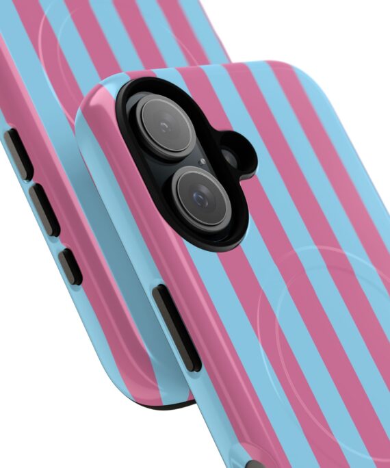Pink & Sky Blue Stripe MagSafe iPhone Cases