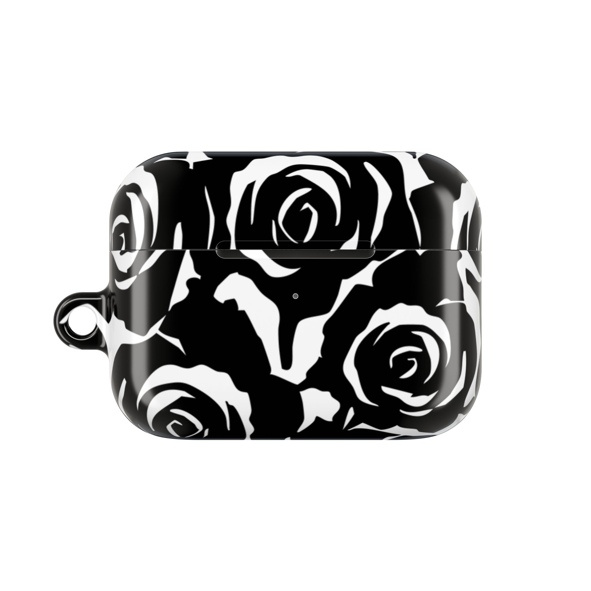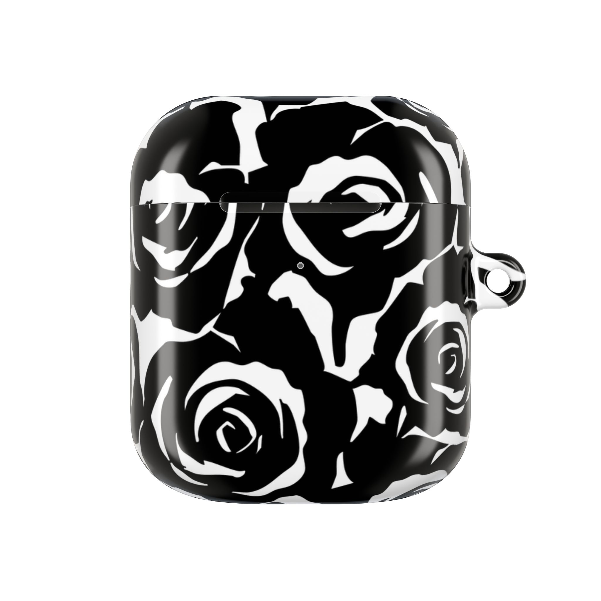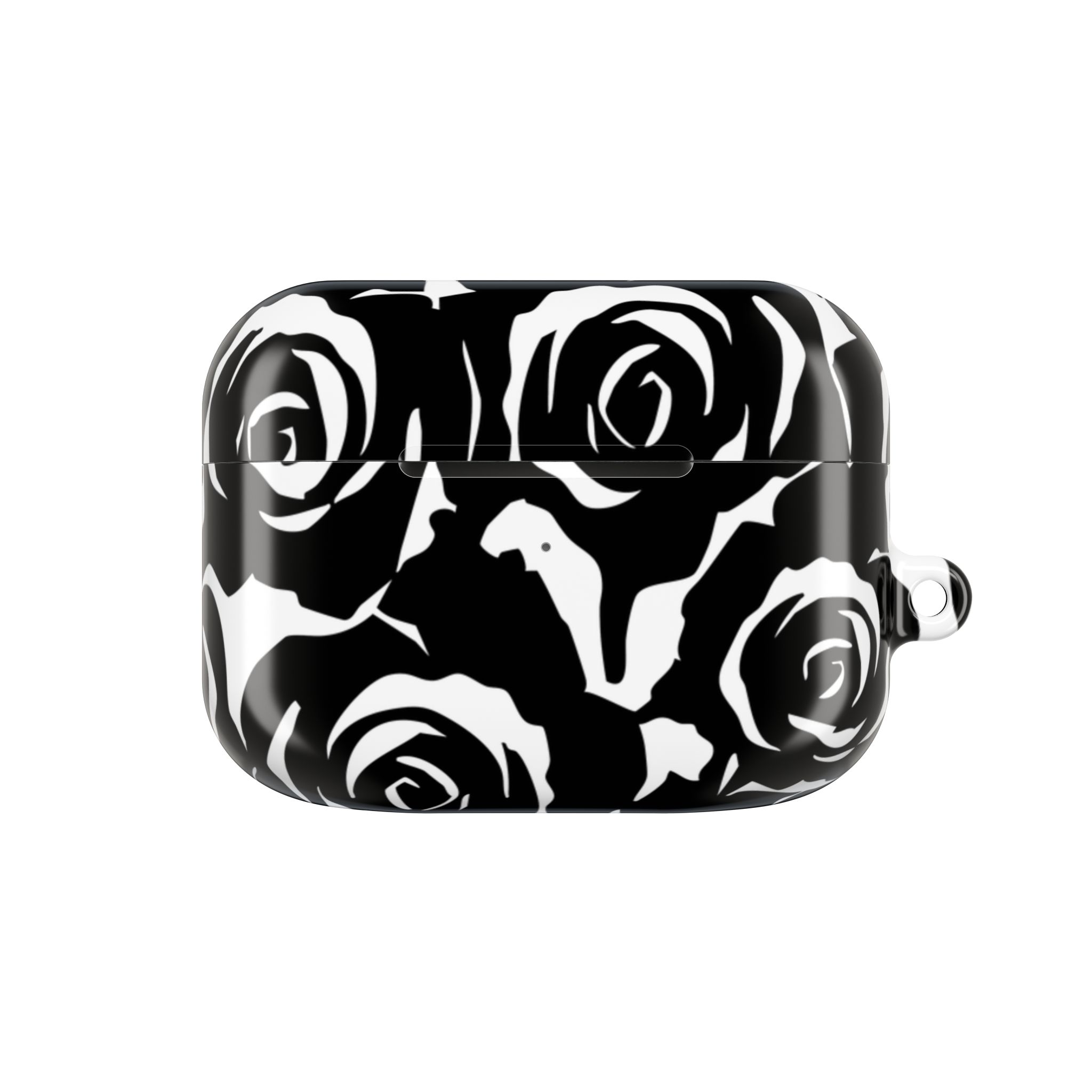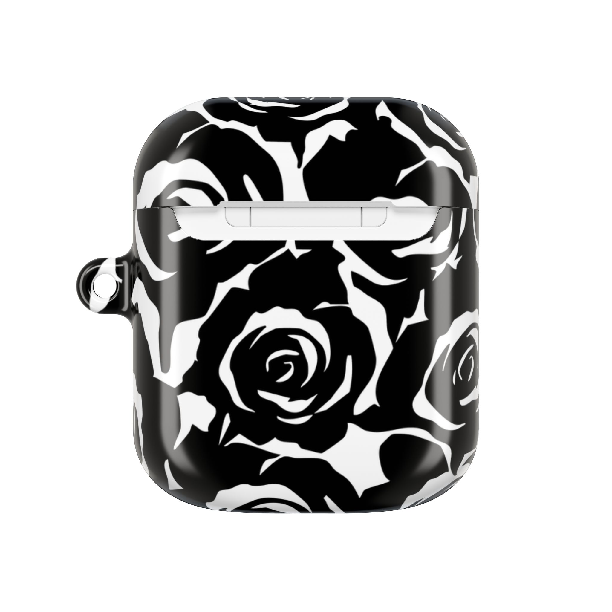 Bring bold elegance to your everyday tech with this sleek Black & White Rose Gloss AirPods Case. Made from durable 100% polycarbonate, it features a vivid floral print sealed under a glossy finish that resists scratches, scuffs, and daily wear. The slim profile adds style without bulk, while the accessible charging port keeps your routine smooth and Qi-charging friendly.