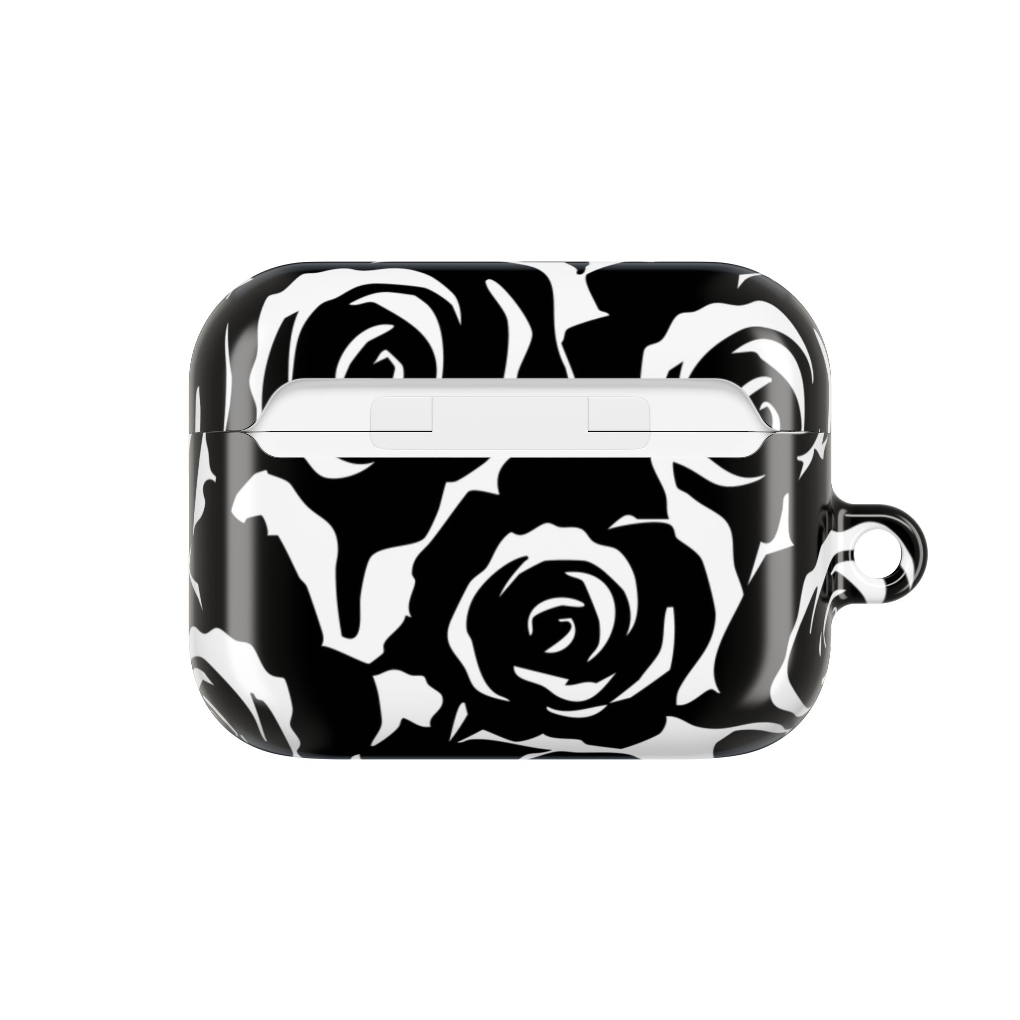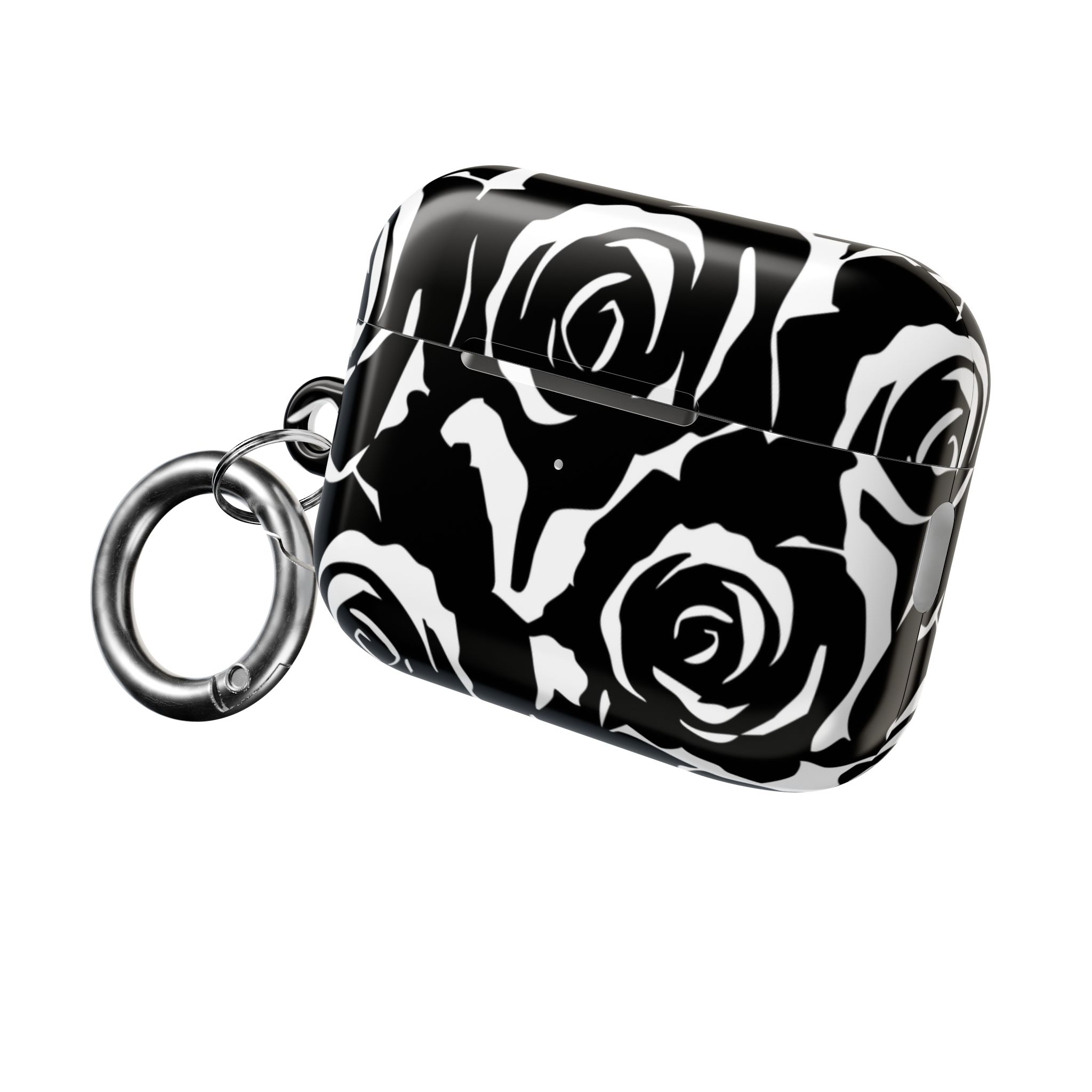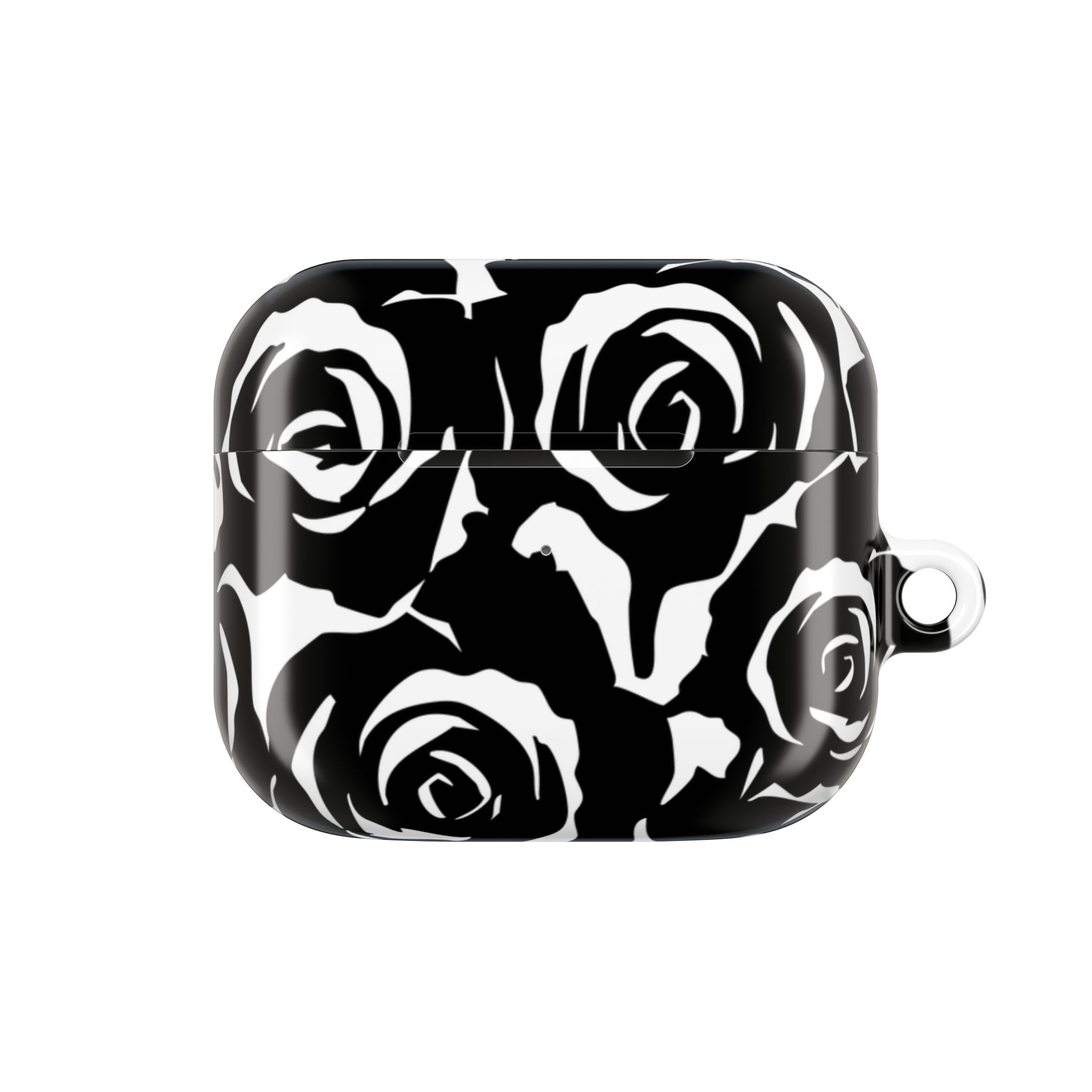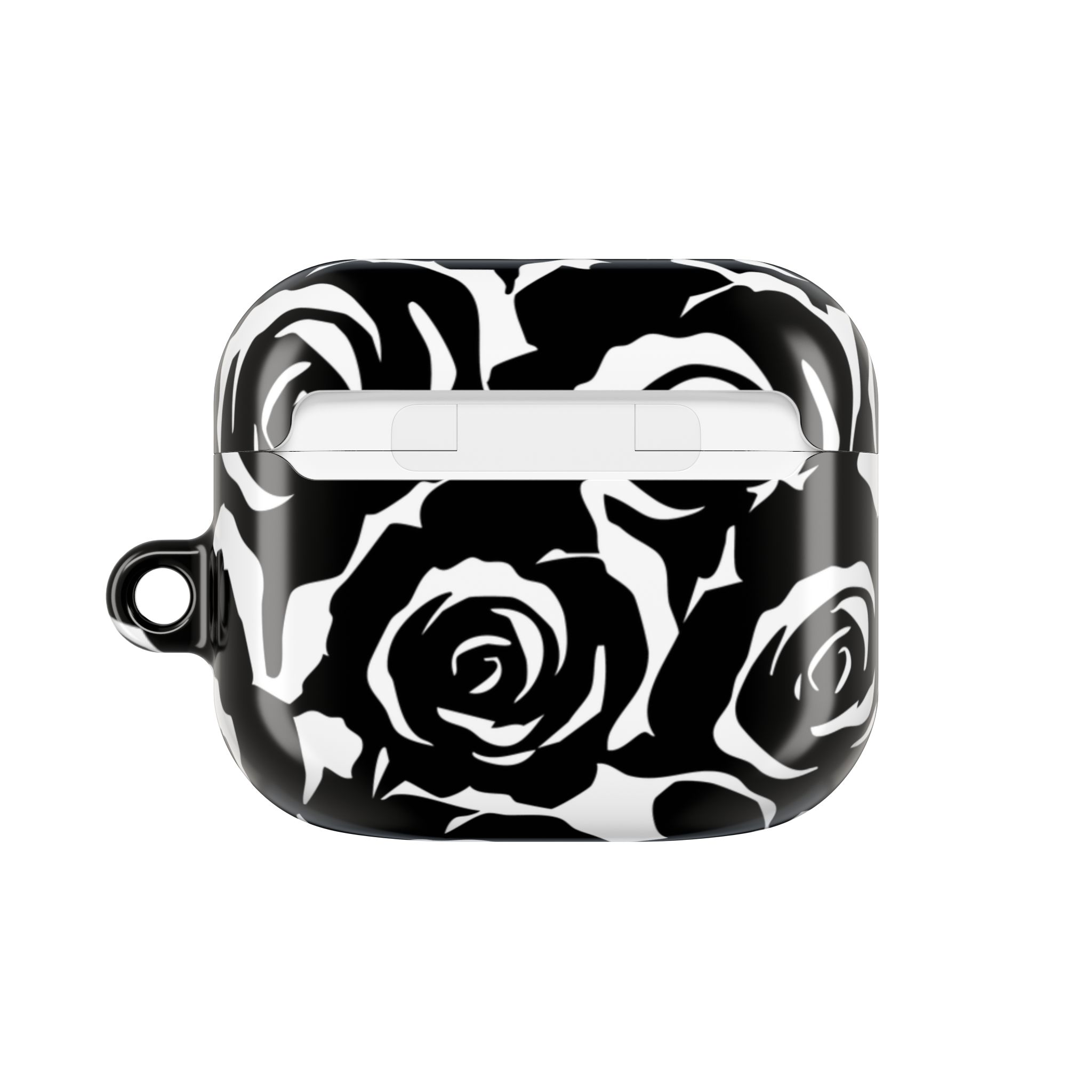 Bring bold elegance to your everyday tech with this sleek Black & White Rose Gloss AirPods Case. Made from durable 100% polycarbonate, it features a vivid floral print sealed under a glossy finish that resists scratches, scuffs, and daily wear. The slim profile adds style without bulk, while the accessible charging port keeps your routine smooth and Qi-charging friendly.