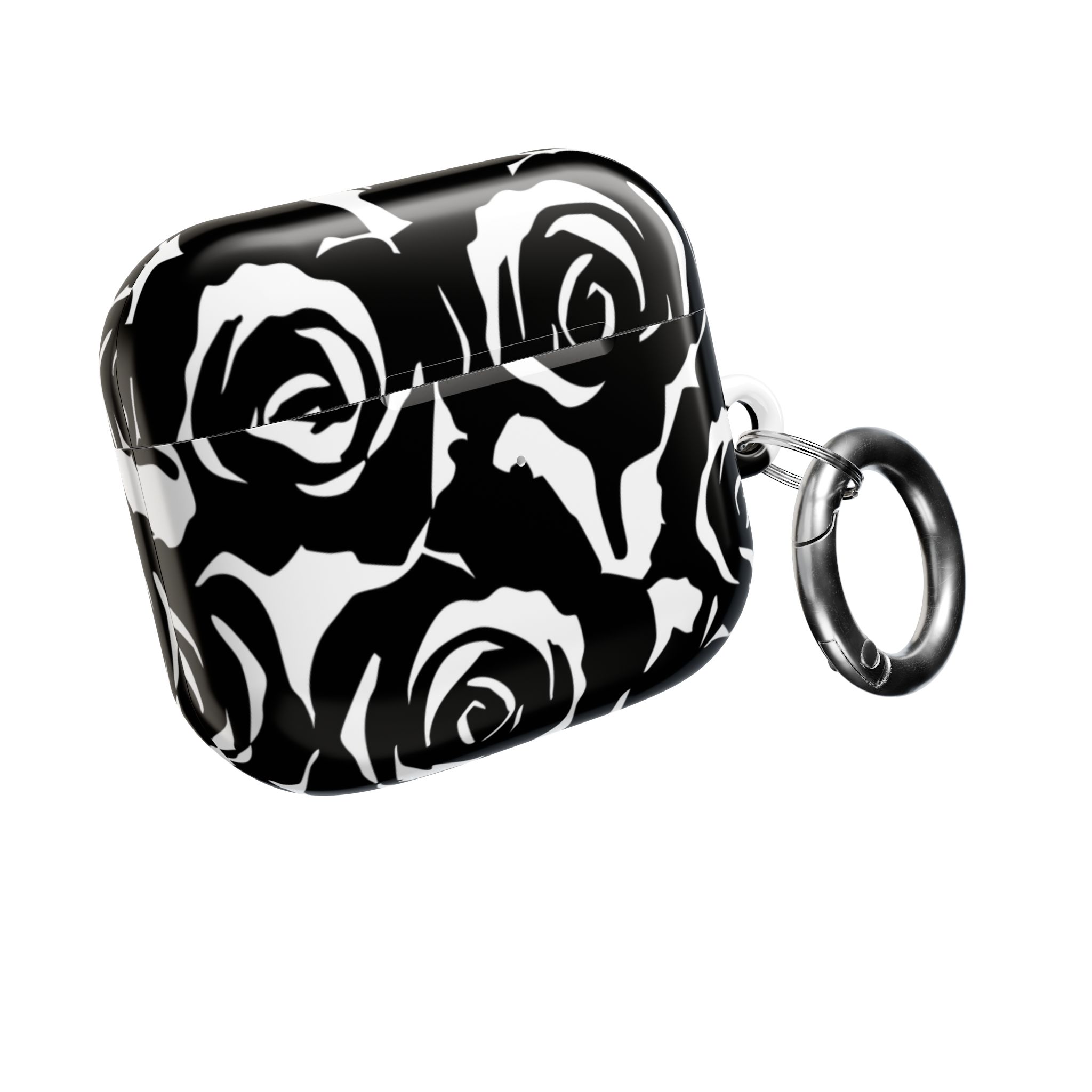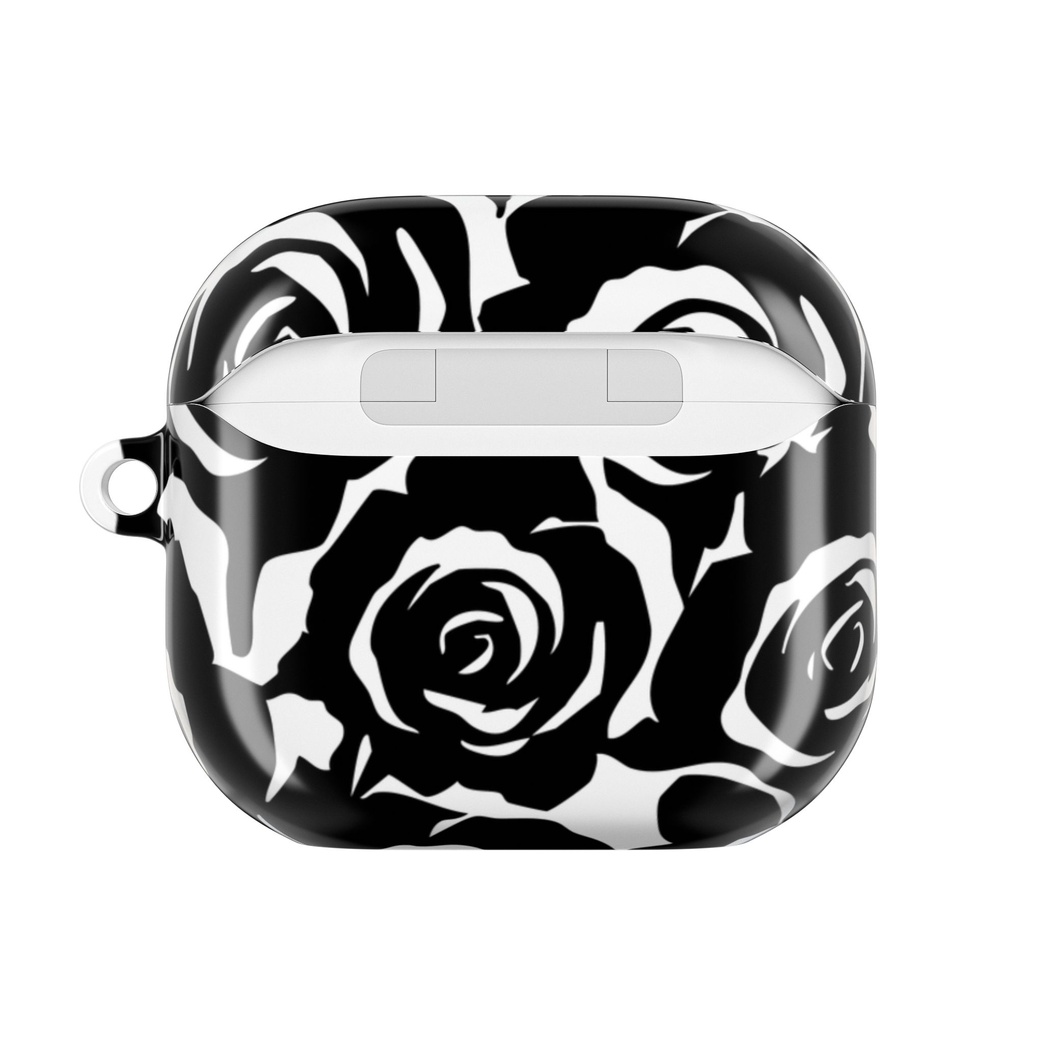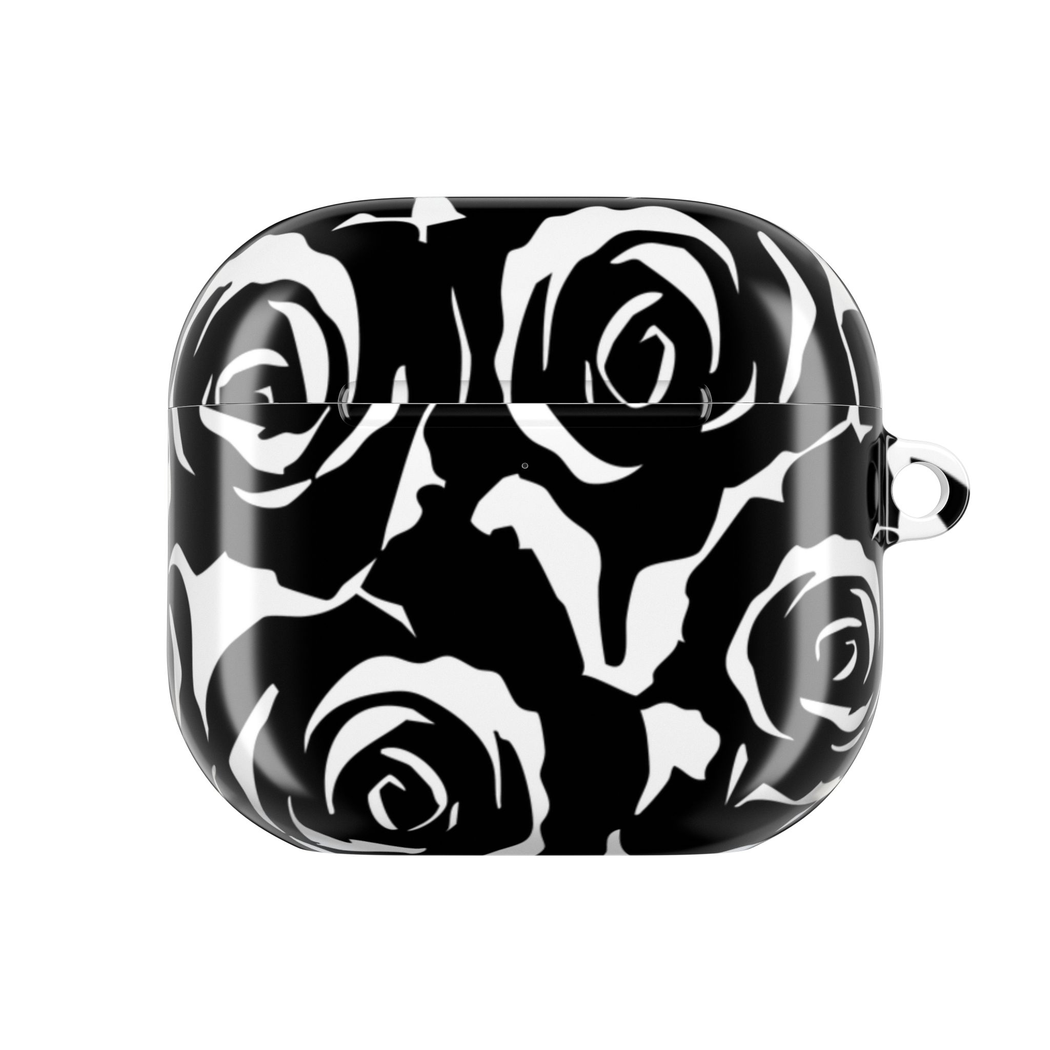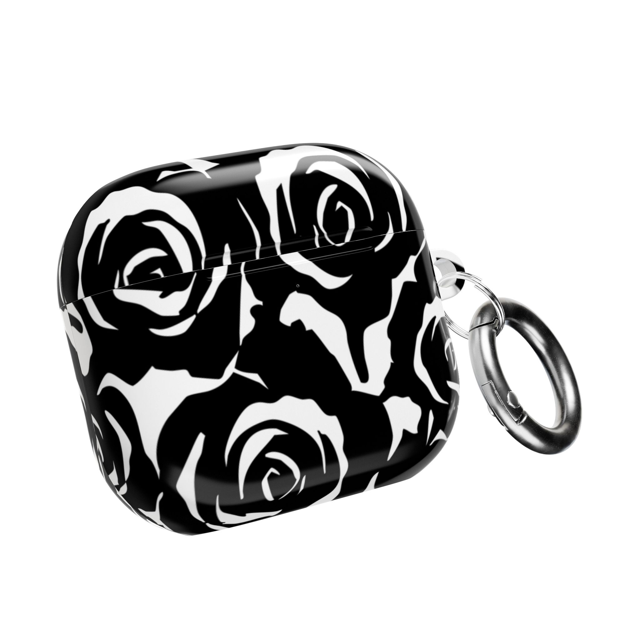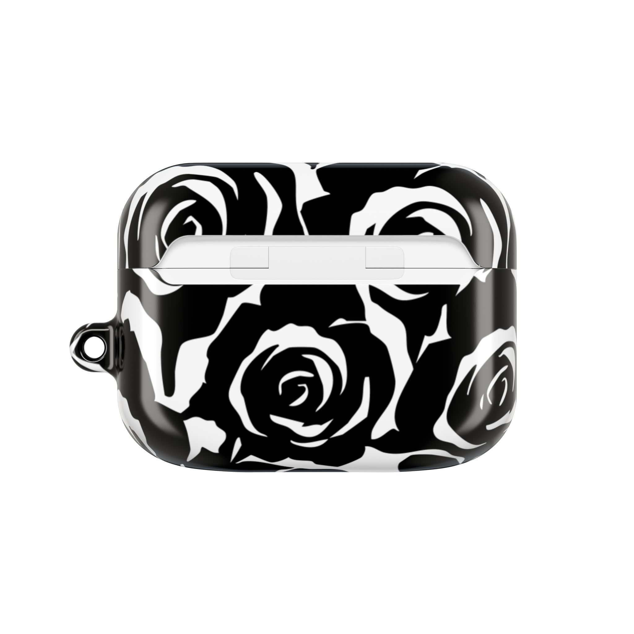 Bring bold elegance to your everyday tech with this sleek Black & White Rose Gloss AirPods Case. Made from durable 100% polycarbonate, it features a vivid floral print sealed under a glossy finish that resists scratches, scuffs, and daily wear. The slim profile adds style without bulk, while the accessible charging port keeps your routine smooth and Qi-charging friendly.