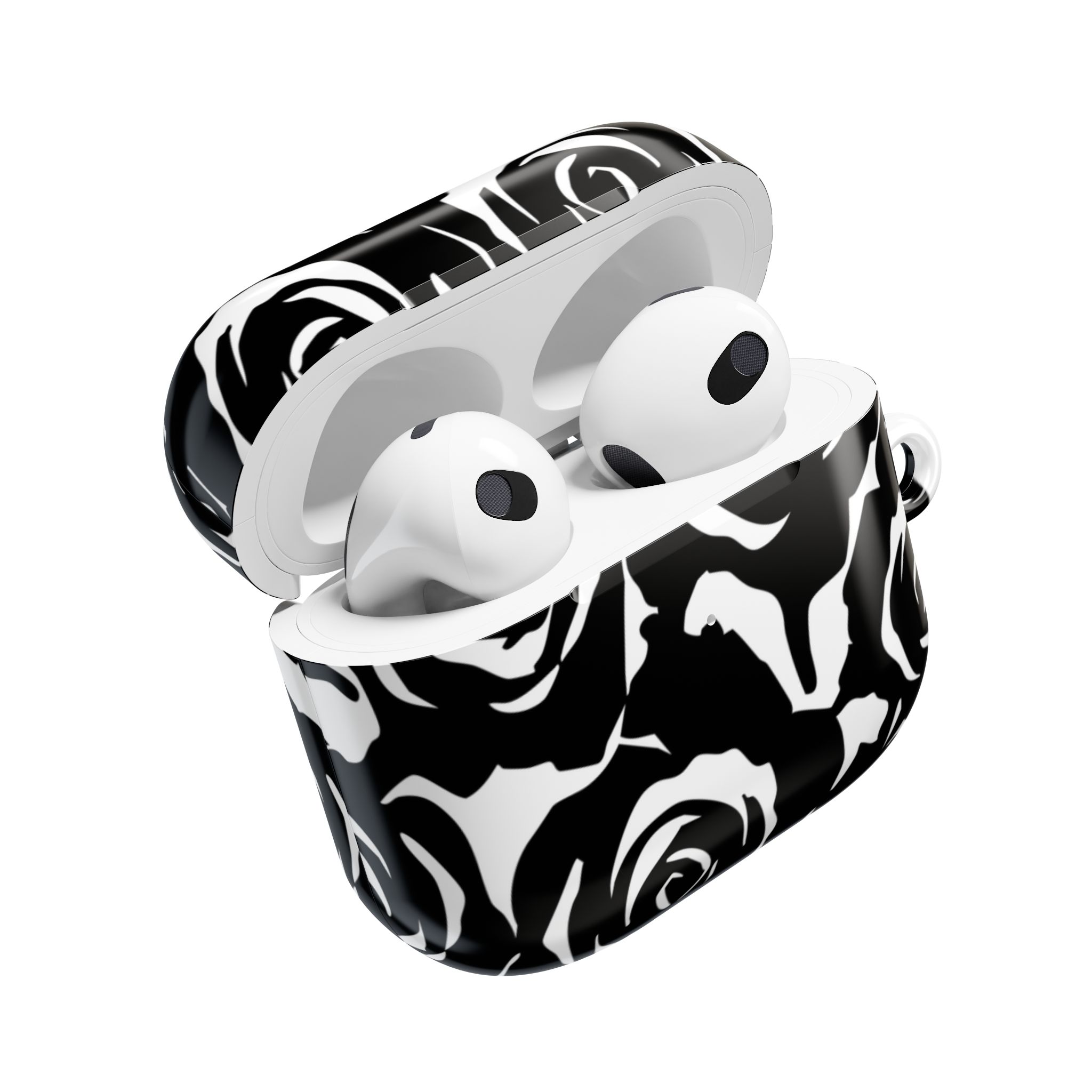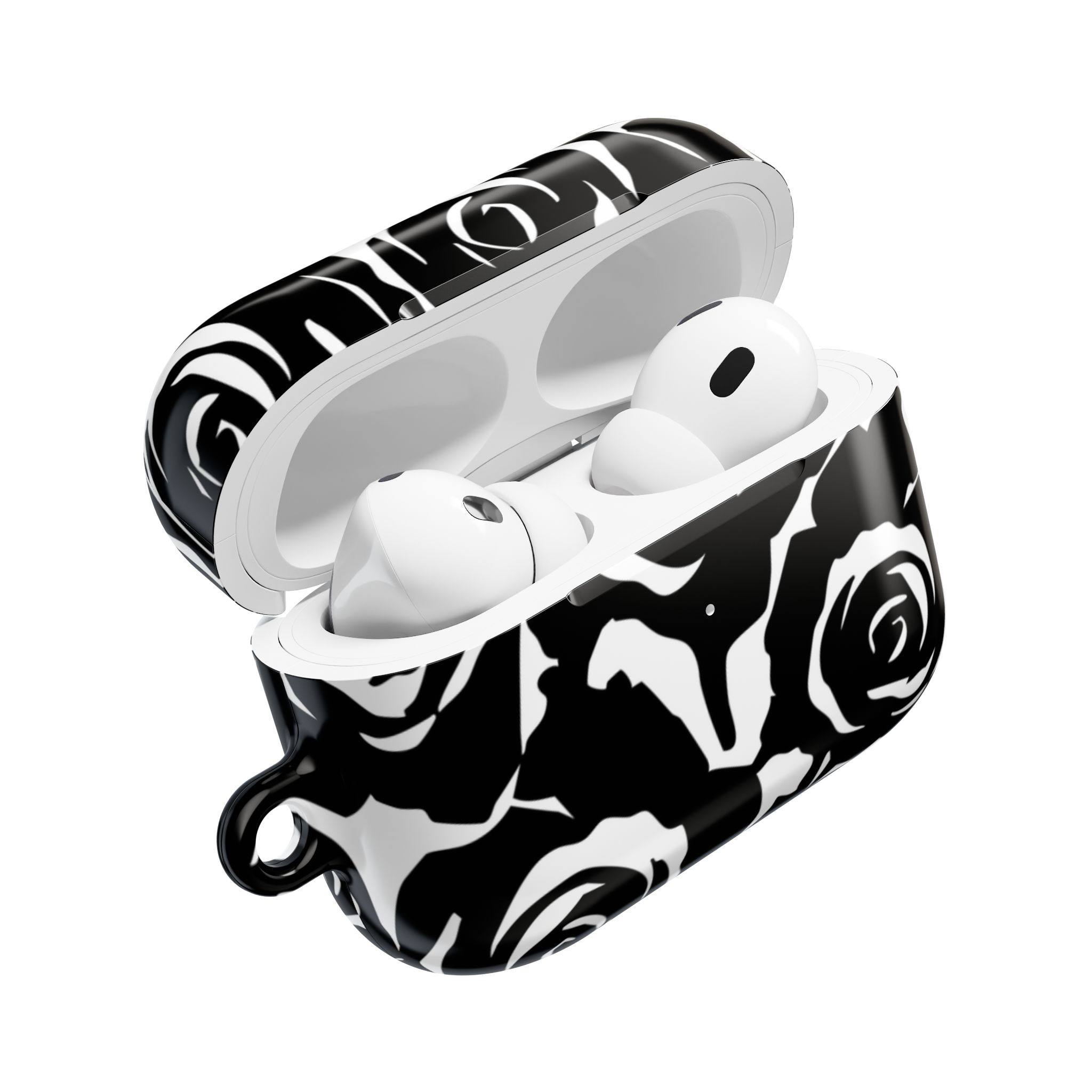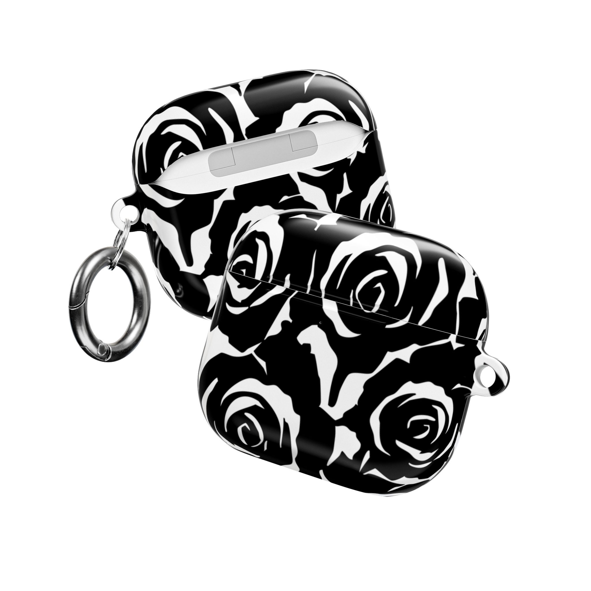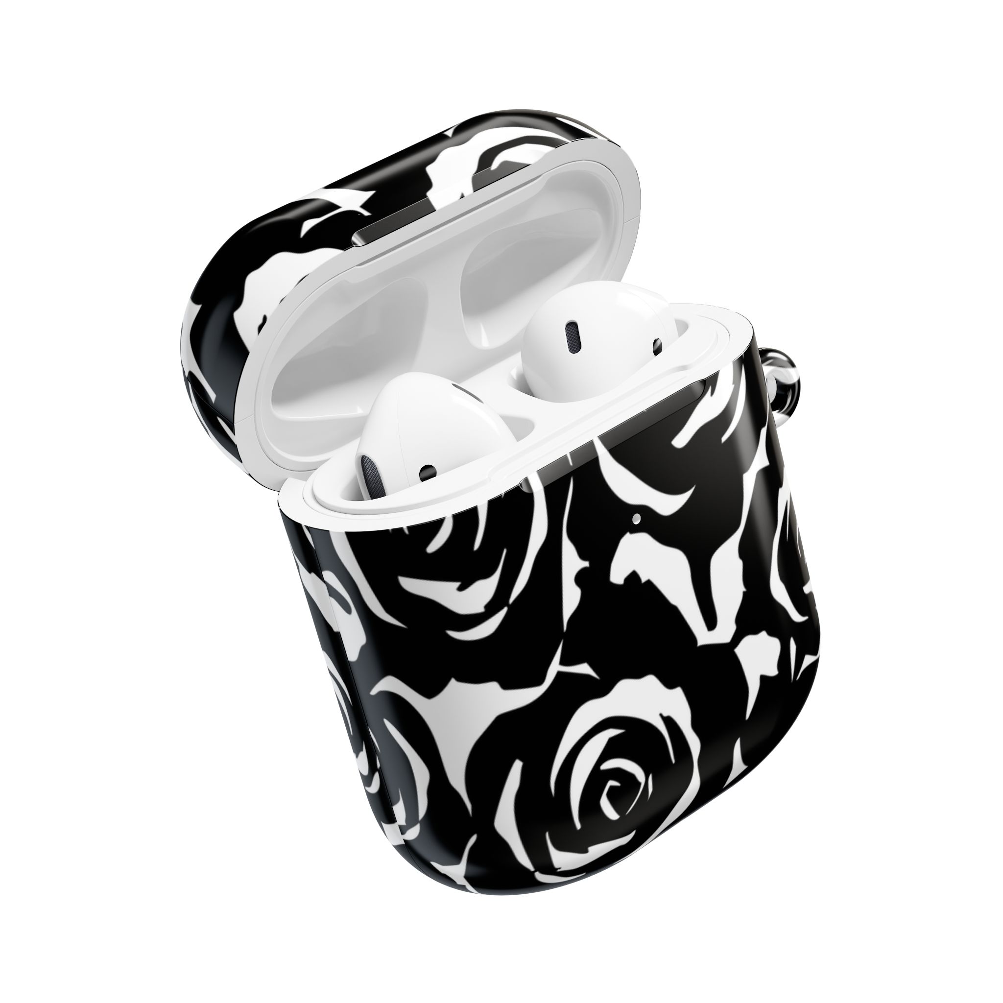 Bring bold elegance to your everyday tech with this sleek Black & White Rose Gloss AirPods Case. Made from durable 100% polycarbonate, it features a vivid floral print sealed under a glossy finish that resists scratches, scuffs, and daily wear. The slim profile adds style without bulk, while the accessible charging port keeps your routine smooth and Qi-charging friendly.