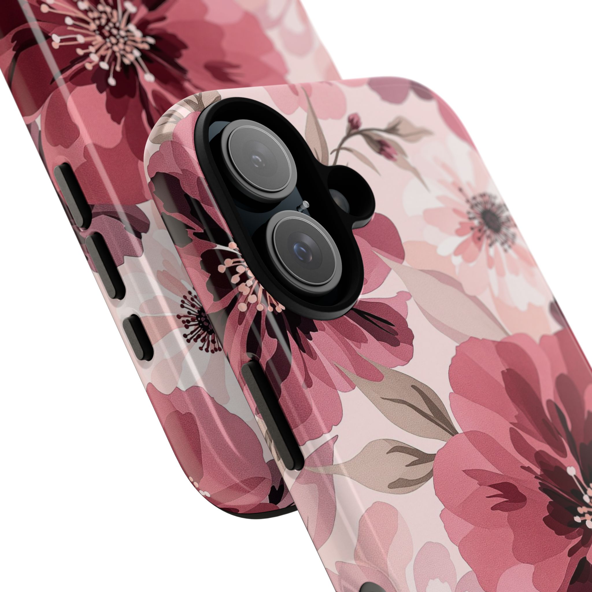 This slim yet rugged phone case blends high-impact protection with a soft, vintage floral look. Rosy blooms flow across the surface in a full 3D wrap, delivering an artful, feminine feel while staying practical for everyday use.
