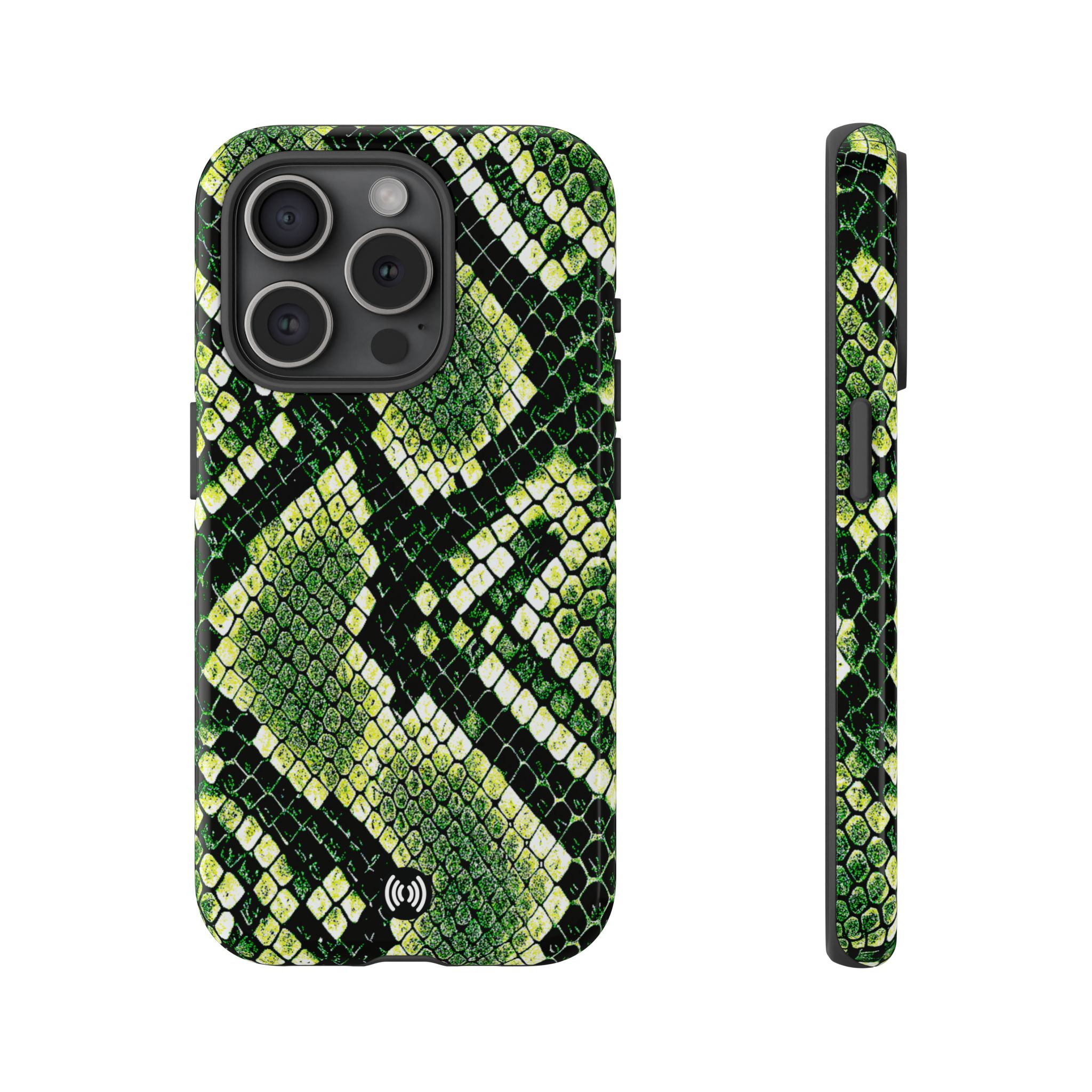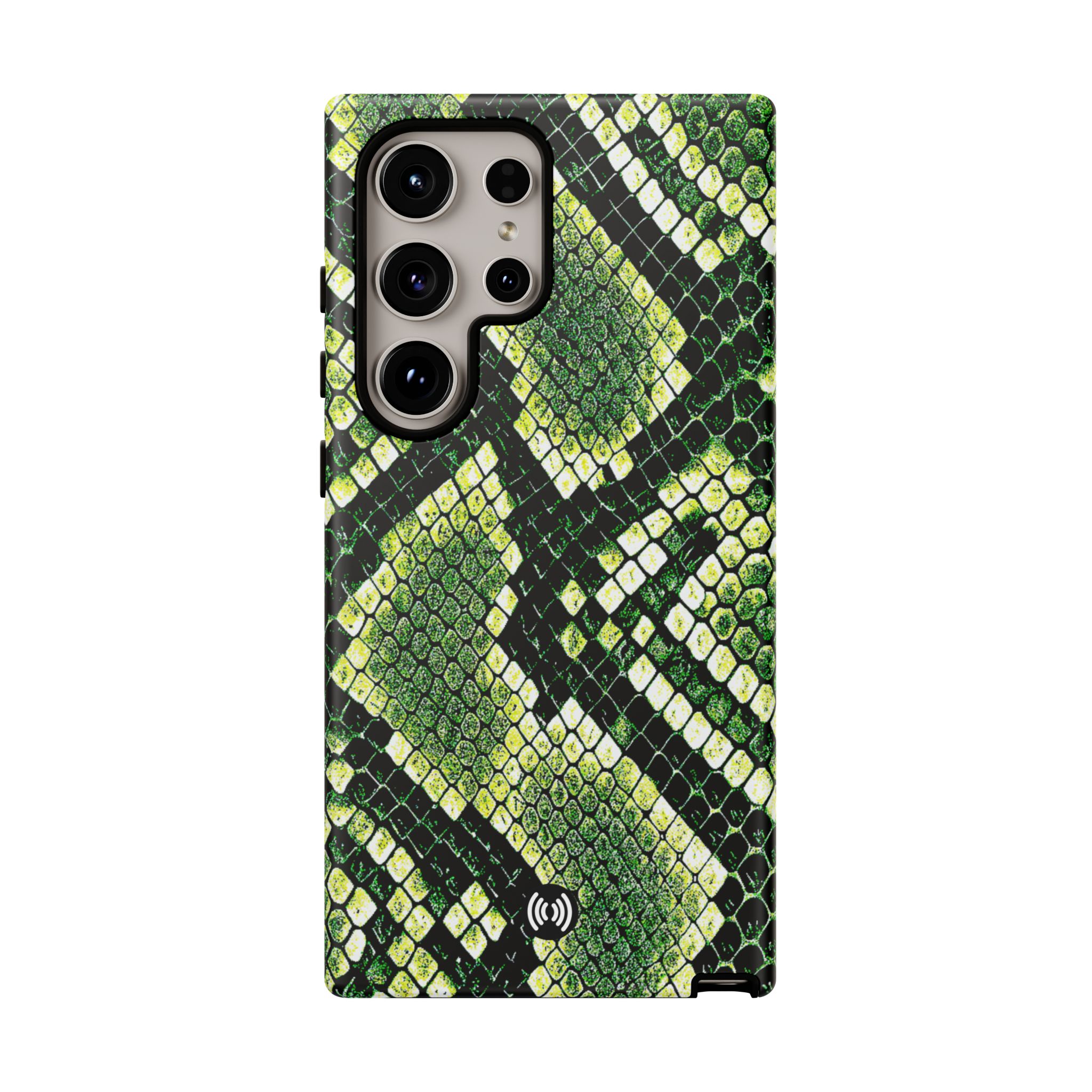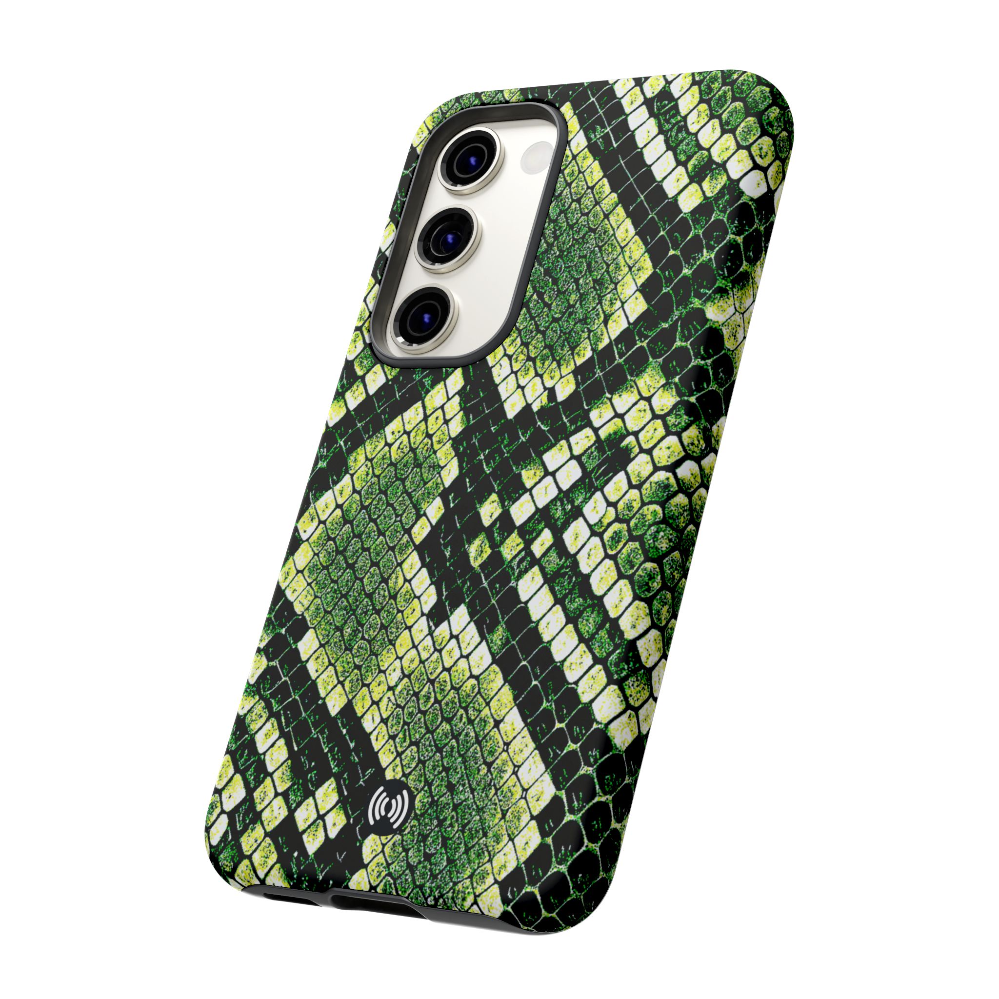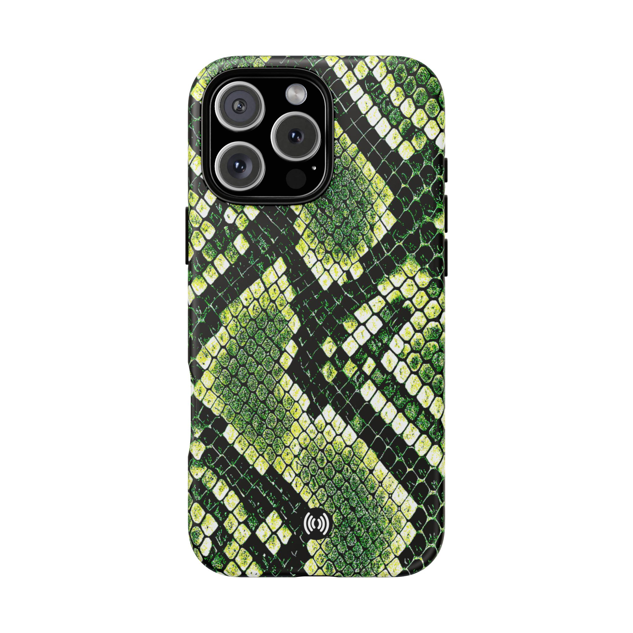 This green snakeskin phone case brings bold texture and confident style to everyday carry. The dual-layer shell combines a rigid polycarbonate exterior with a soft TPU silicone liner for reliable shock absorption and secure fit. A full-wrap 3D print gives rich, high-density color across the whole surface while UV protection helps preserve the vibrant pattern outdoors. Slim profiles and open ports keep your phone accessible and support wireless charging, so the case stays as functional as it is striking. Built to meet international safety standards and sourced from South Korea, it’s a sturdy, fashion-forward option for someone who likes an edgy, tactile look.