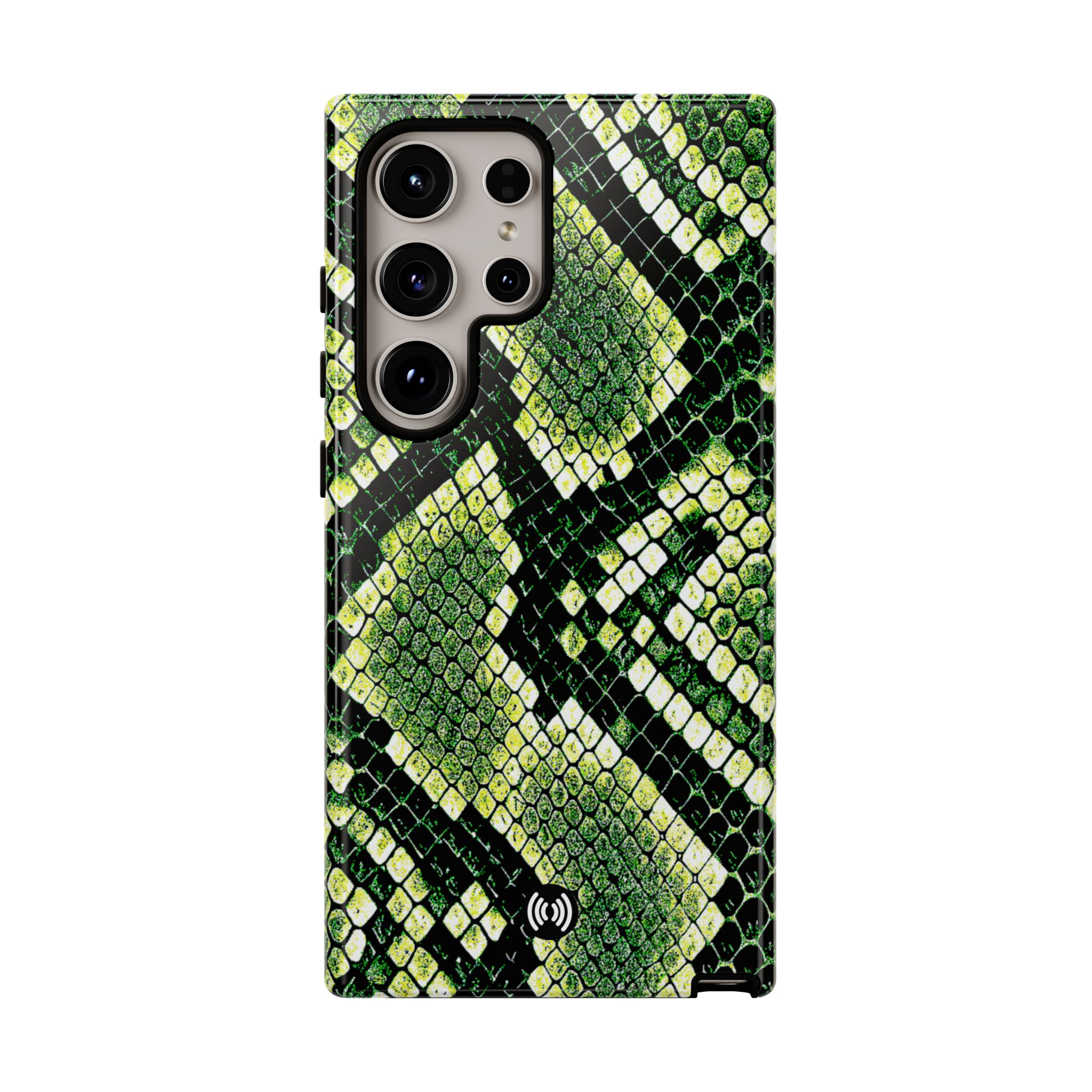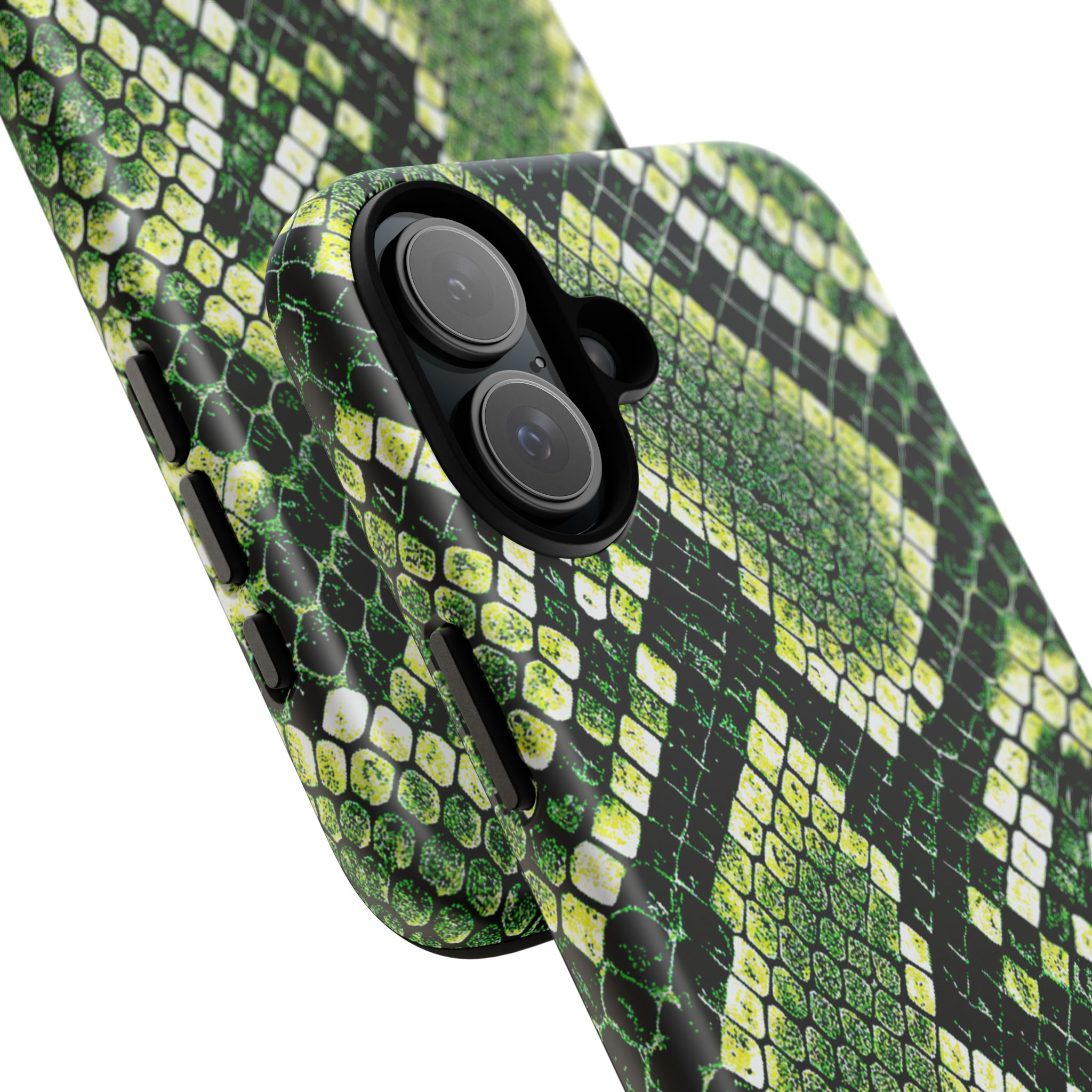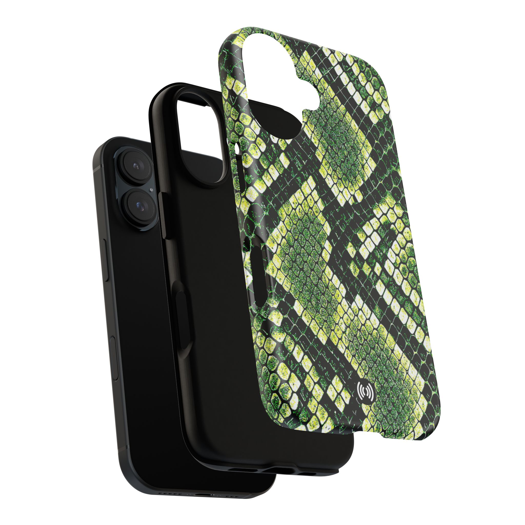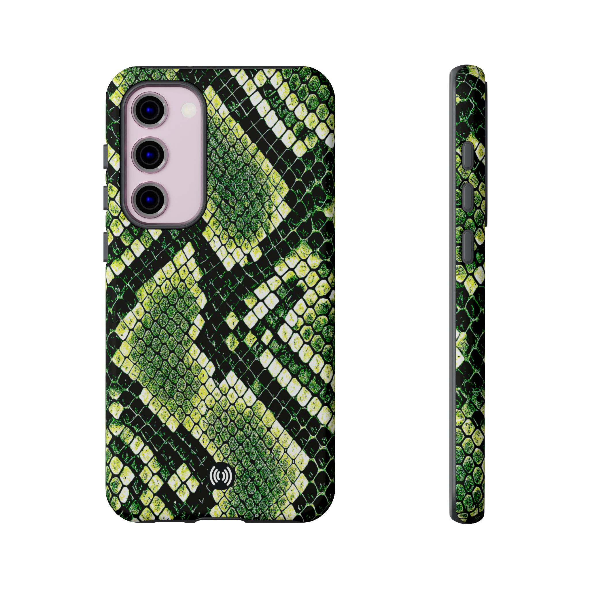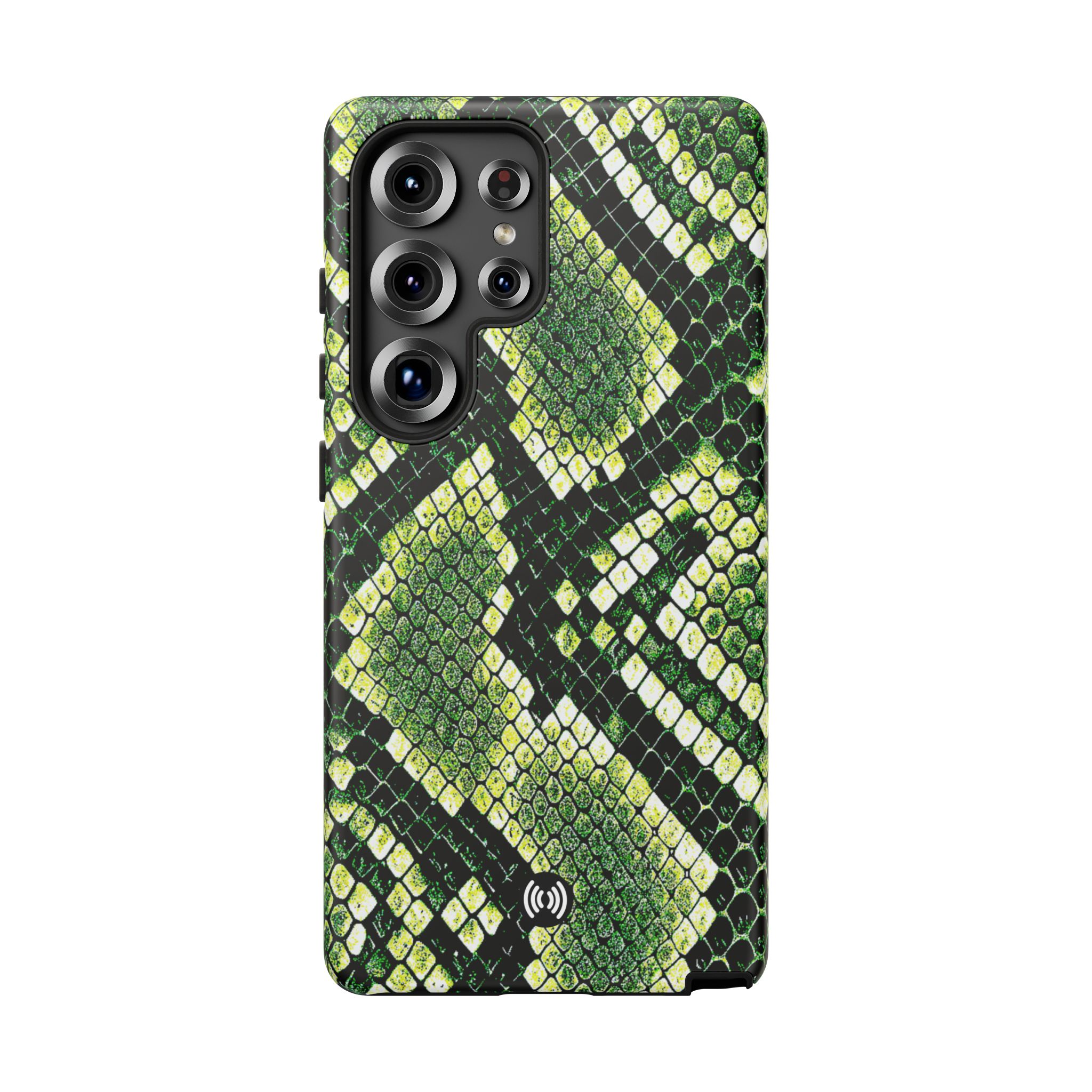 This green snakeskin phone case brings bold texture and confident style to everyday carry. The dual-layer shell combines a rigid polycarbonate exterior with a soft TPU silicone liner for reliable shock absorption and secure fit. A full-wrap 3D print gives rich, high-density color across the whole surface while UV protection helps preserve the vibrant pattern outdoors. Slim profiles and open ports keep your phone accessible and support wireless charging, so the case stays as functional as it is striking. Built to meet international safety standards and sourced from South Korea, it’s a sturdy, fashion-forward option for someone who likes an edgy, tactile look.