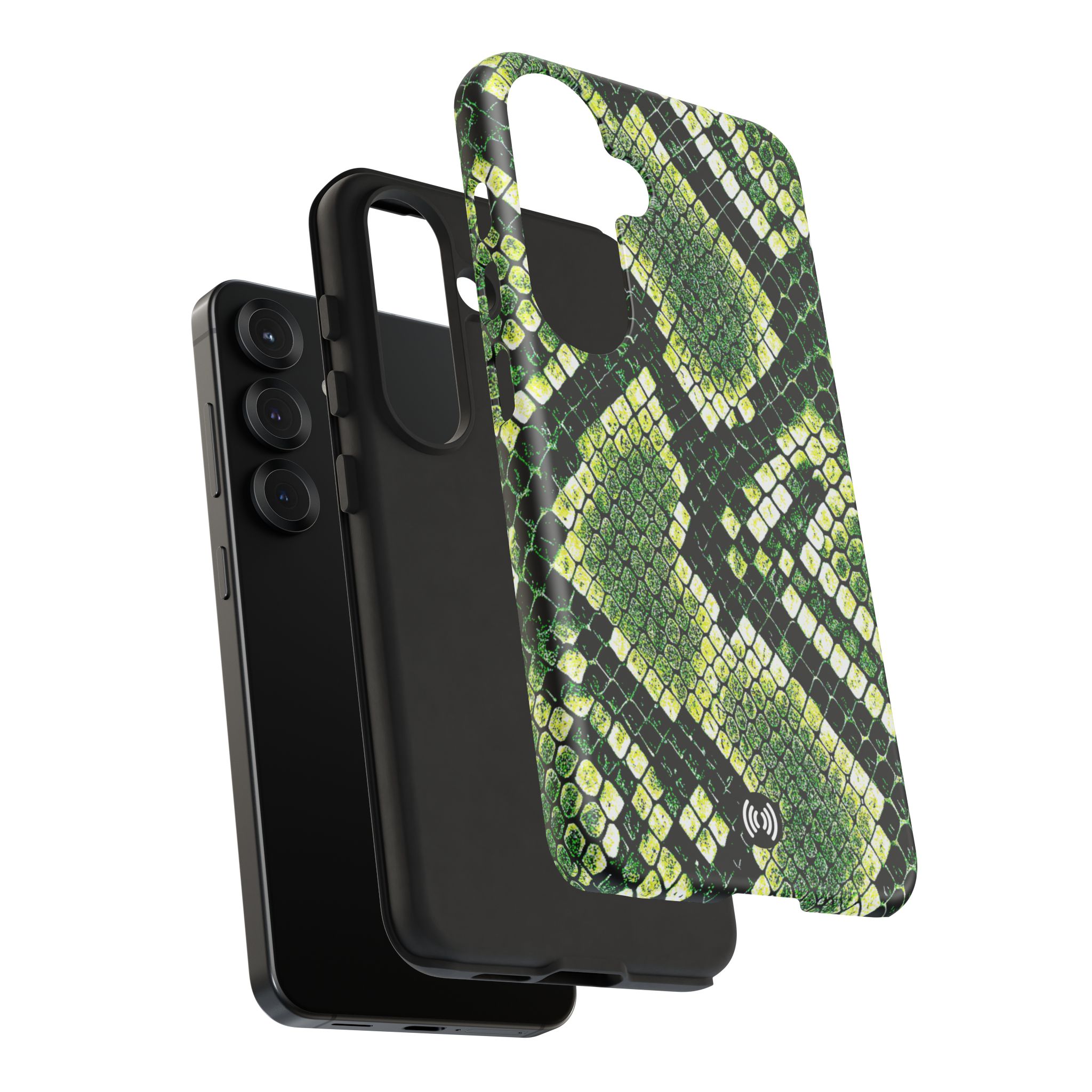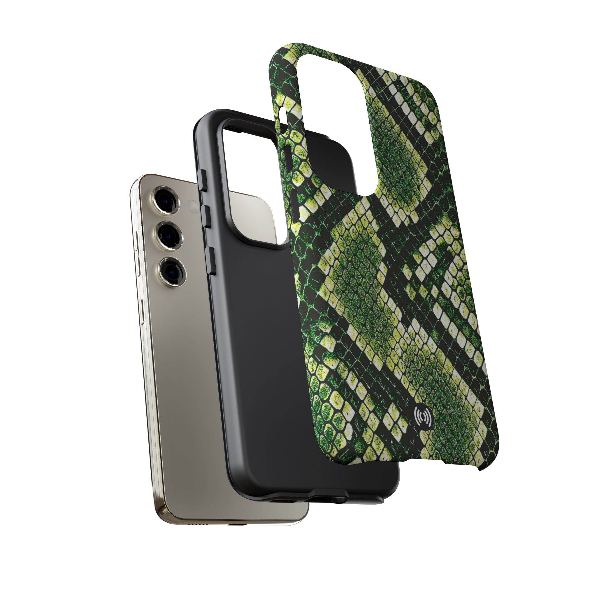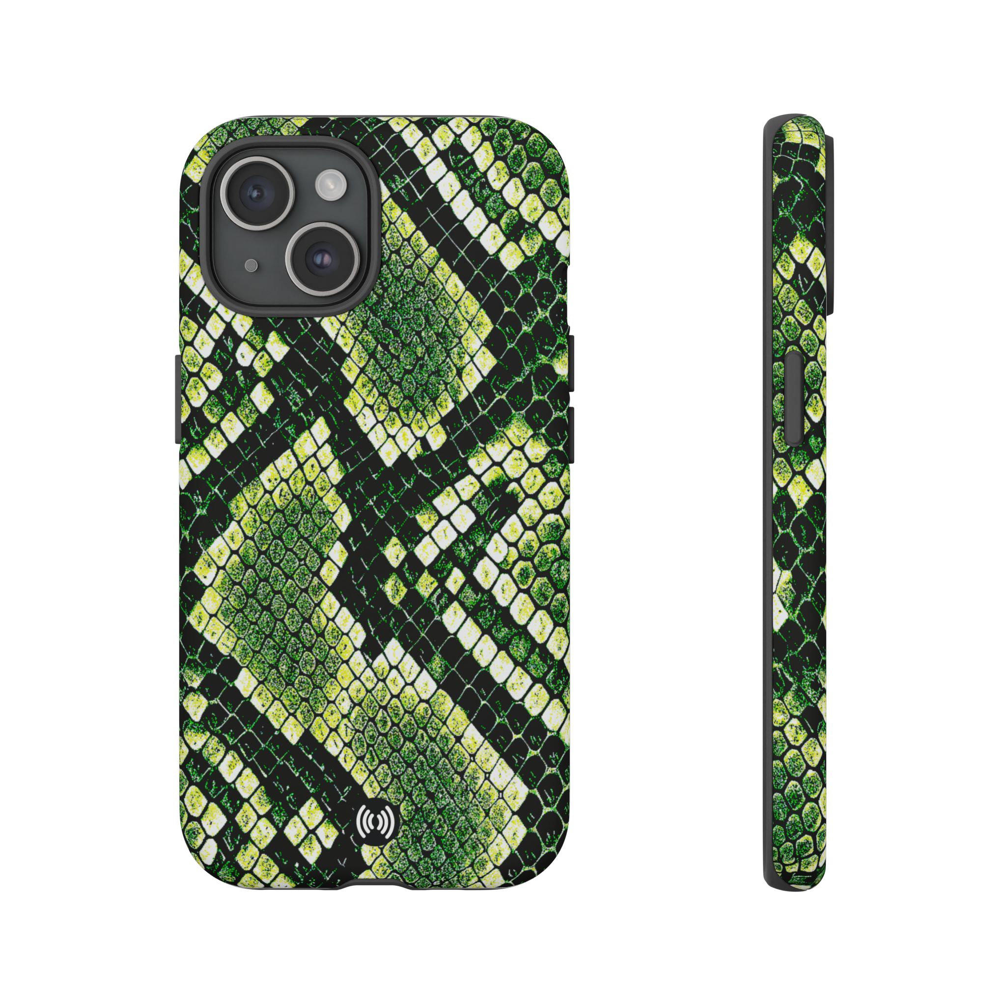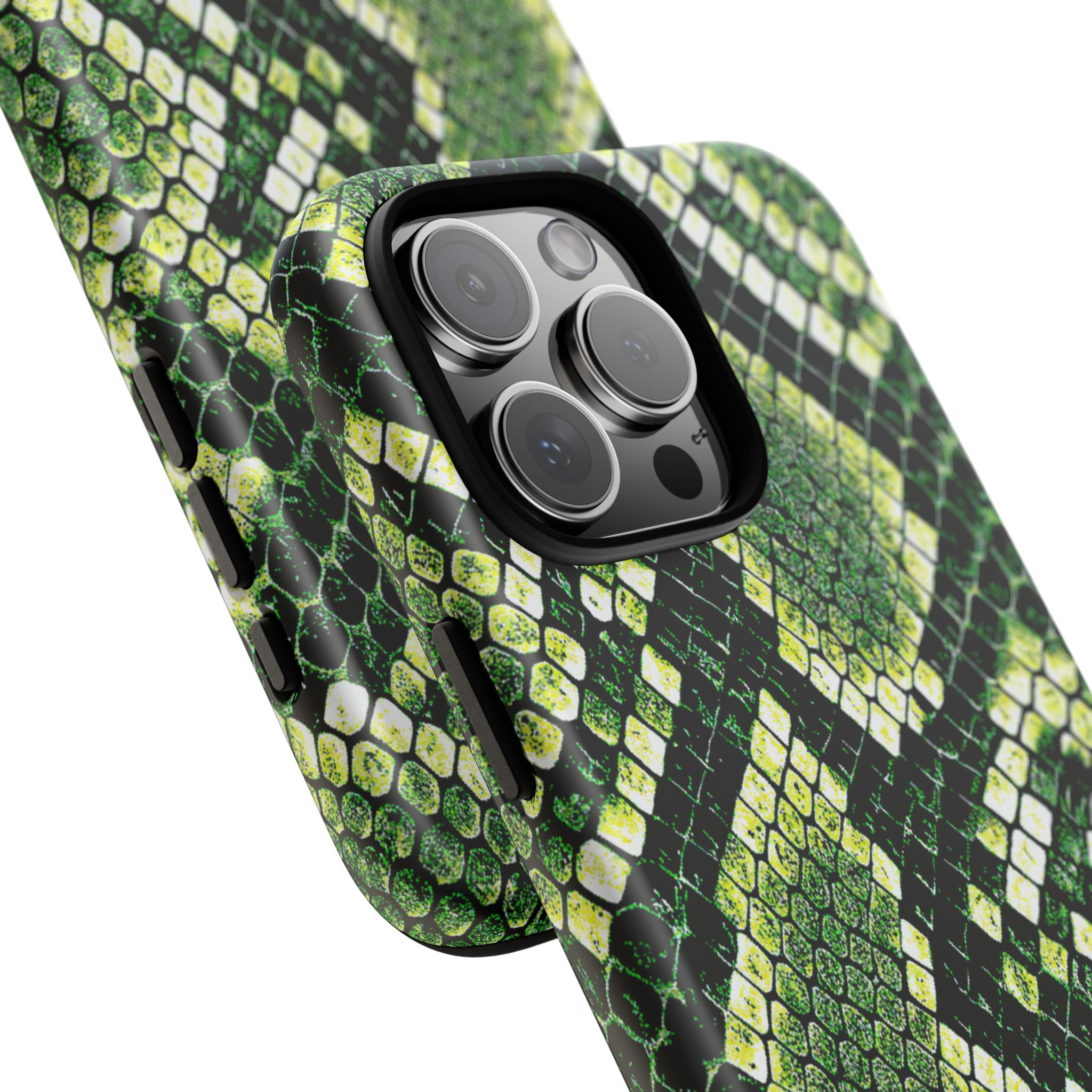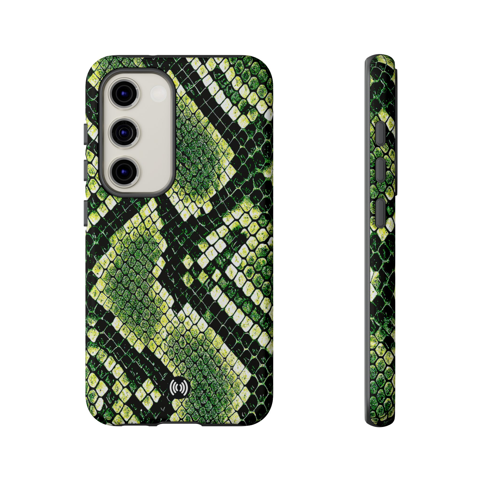 This green snakeskin phone case brings bold texture and confident style to everyday carry. The dual-layer shell combines a rigid polycarbonate exterior with a soft TPU silicone liner for reliable shock absorption and secure fit. A full-wrap 3D print gives rich, high-density color across the whole surface while UV protection helps preserve the vibrant pattern outdoors. Slim profiles and open ports keep your phone accessible and support wireless charging, so the case stays as functional as it is striking. Built to meet international safety standards and sourced from South Korea, it’s a sturdy, fashion-forward option for someone who likes an edgy, tactile look.