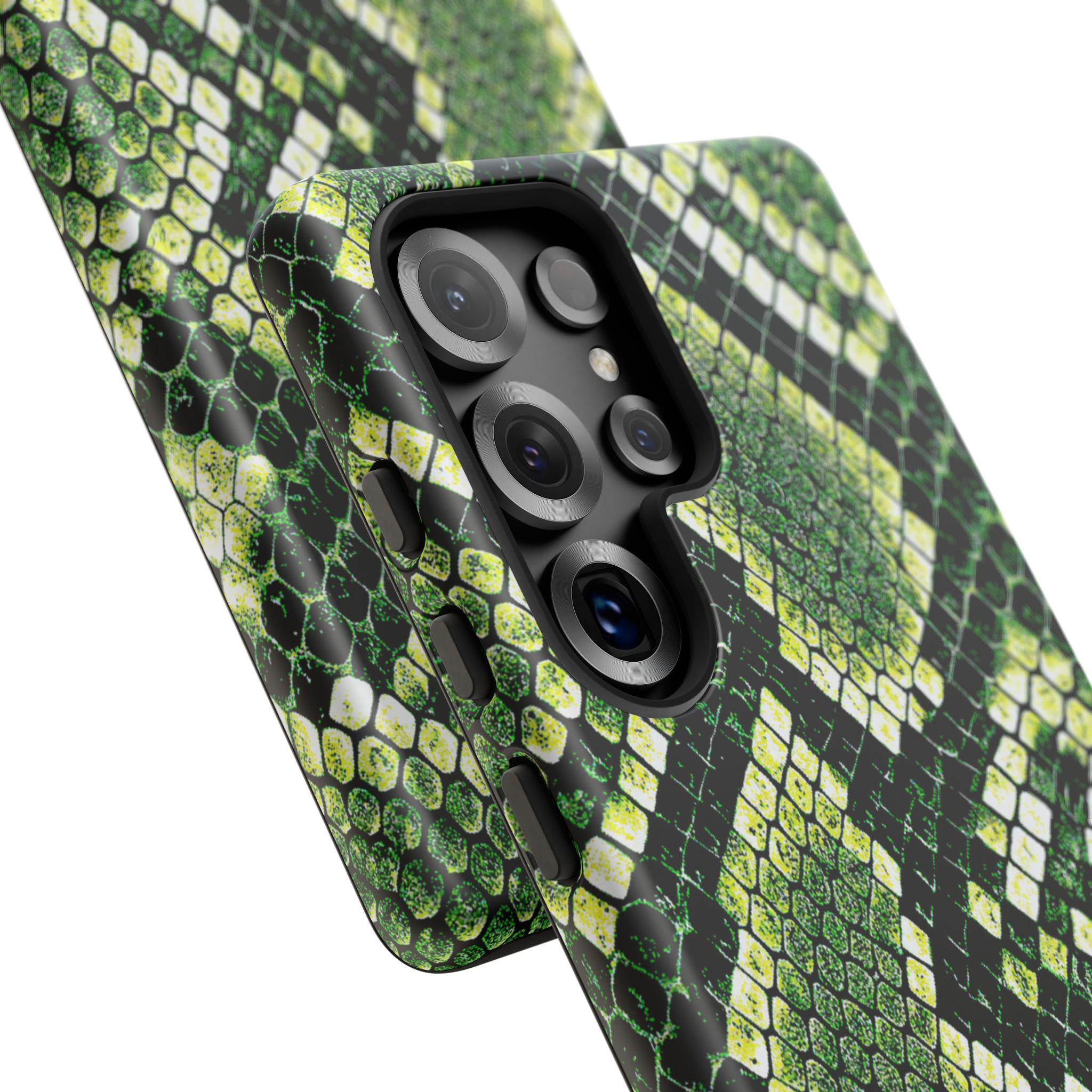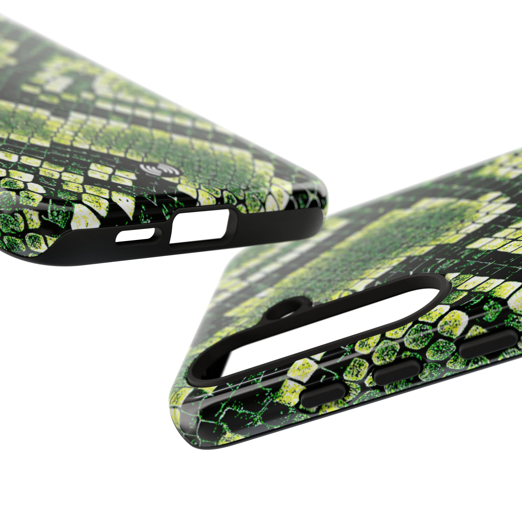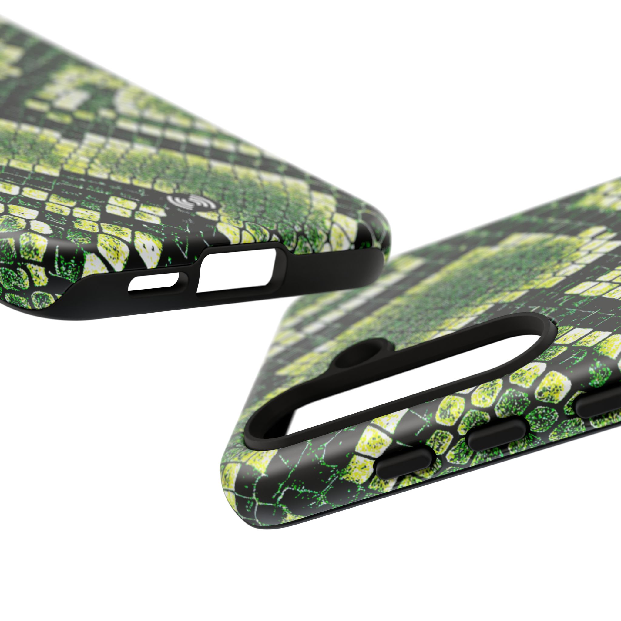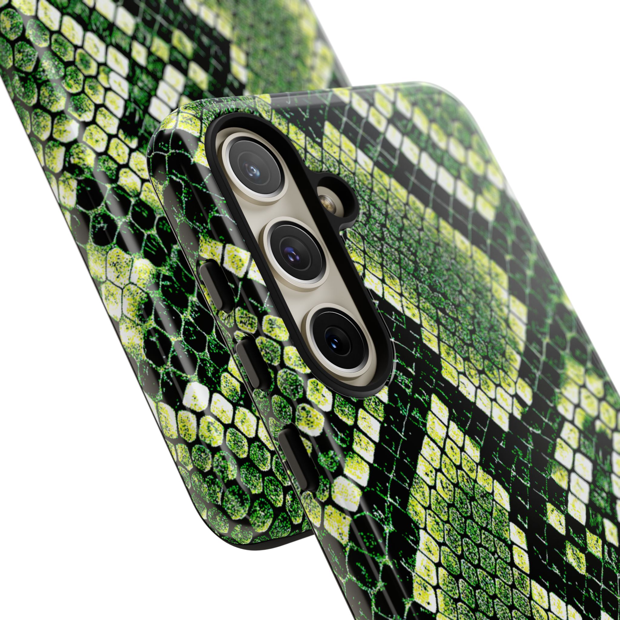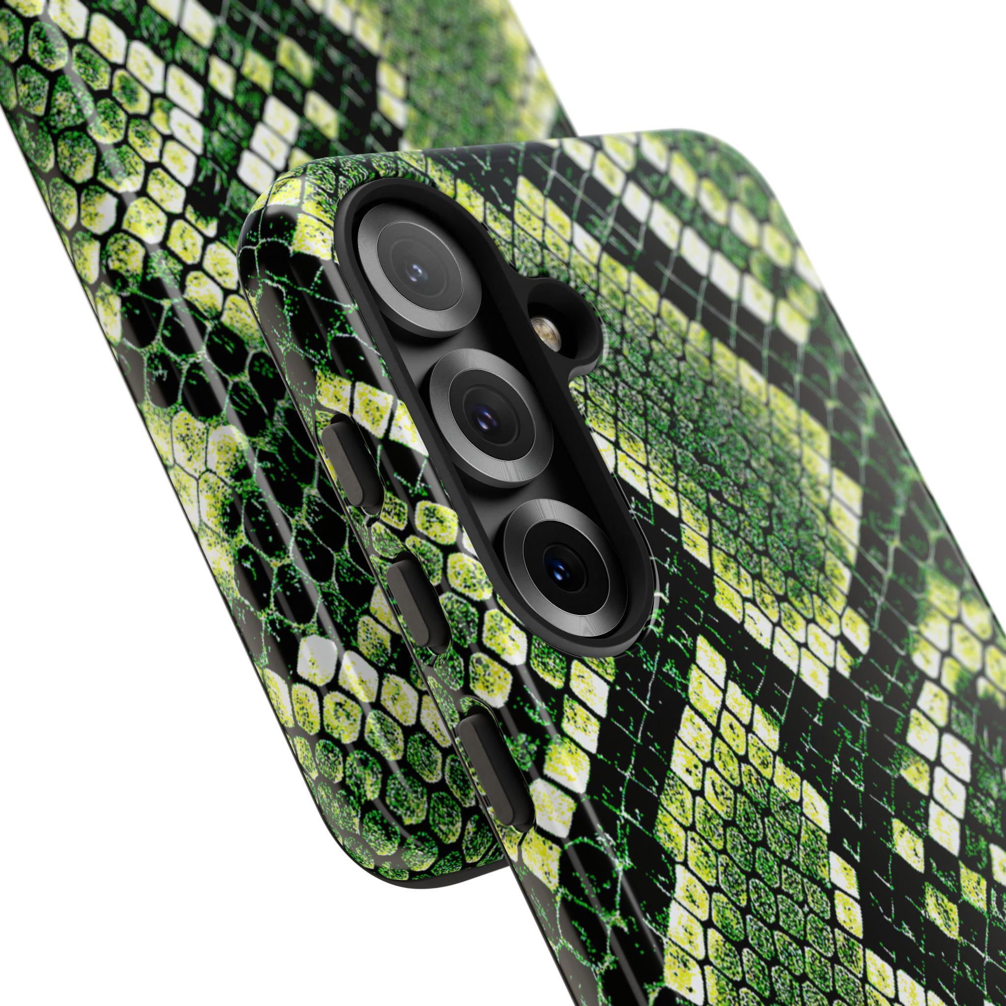 This green snakeskin phone case brings bold texture and confident style to everyday carry. The dual-layer shell combines a rigid polycarbonate exterior with a soft TPU silicone liner for reliable shock absorption and secure fit. A full-wrap 3D print gives rich, high-density color across the whole surface while UV protection helps preserve the vibrant pattern outdoors. Slim profiles and open ports keep your phone accessible and support wireless charging, so the case stays as functional as it is striking. Built to meet international safety standards and sourced from South Korea, it’s a sturdy, fashion-forward option for someone who likes an edgy, tactile look.
