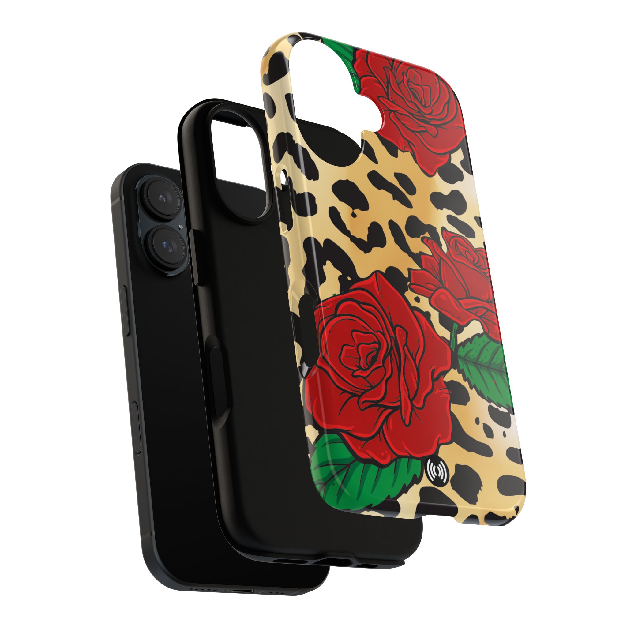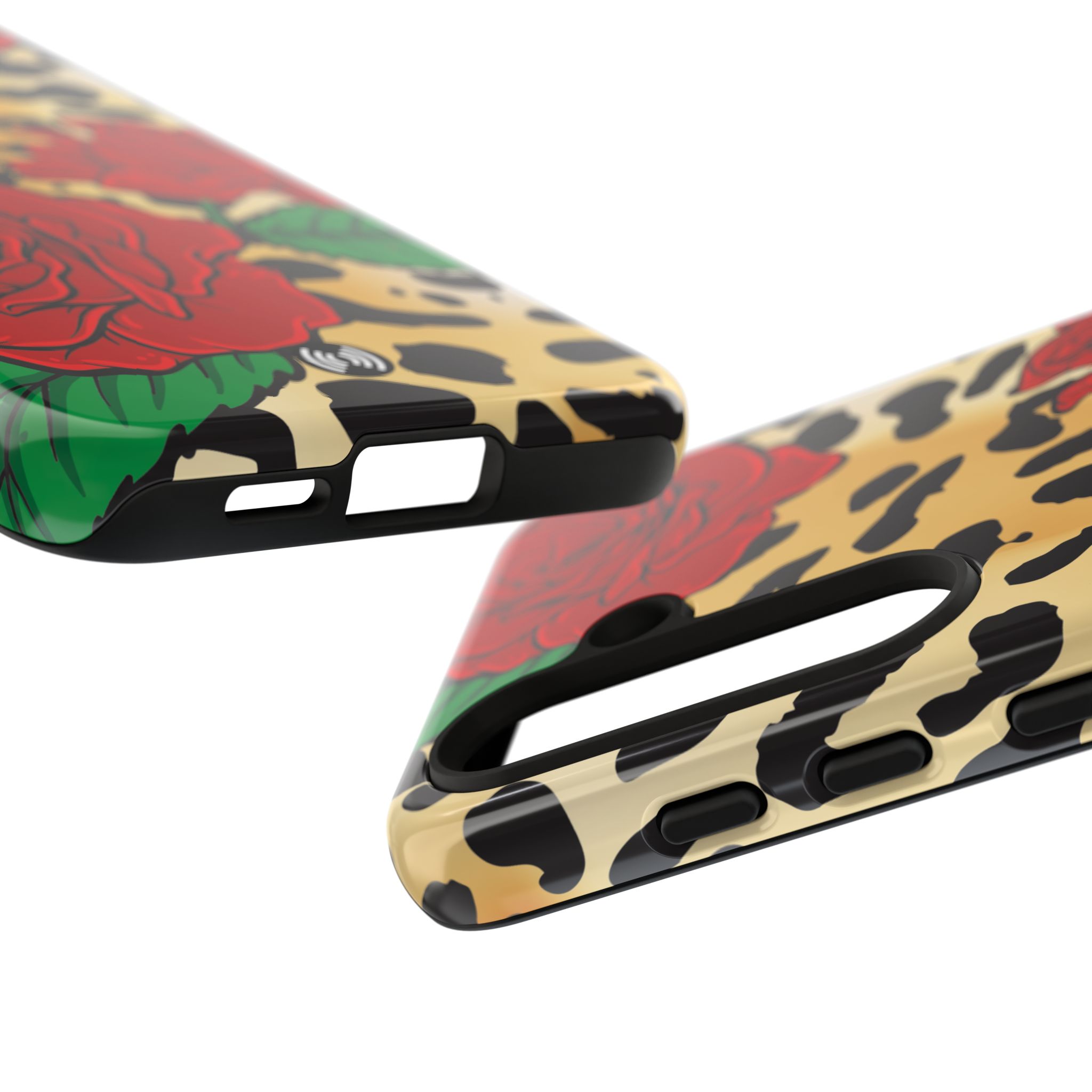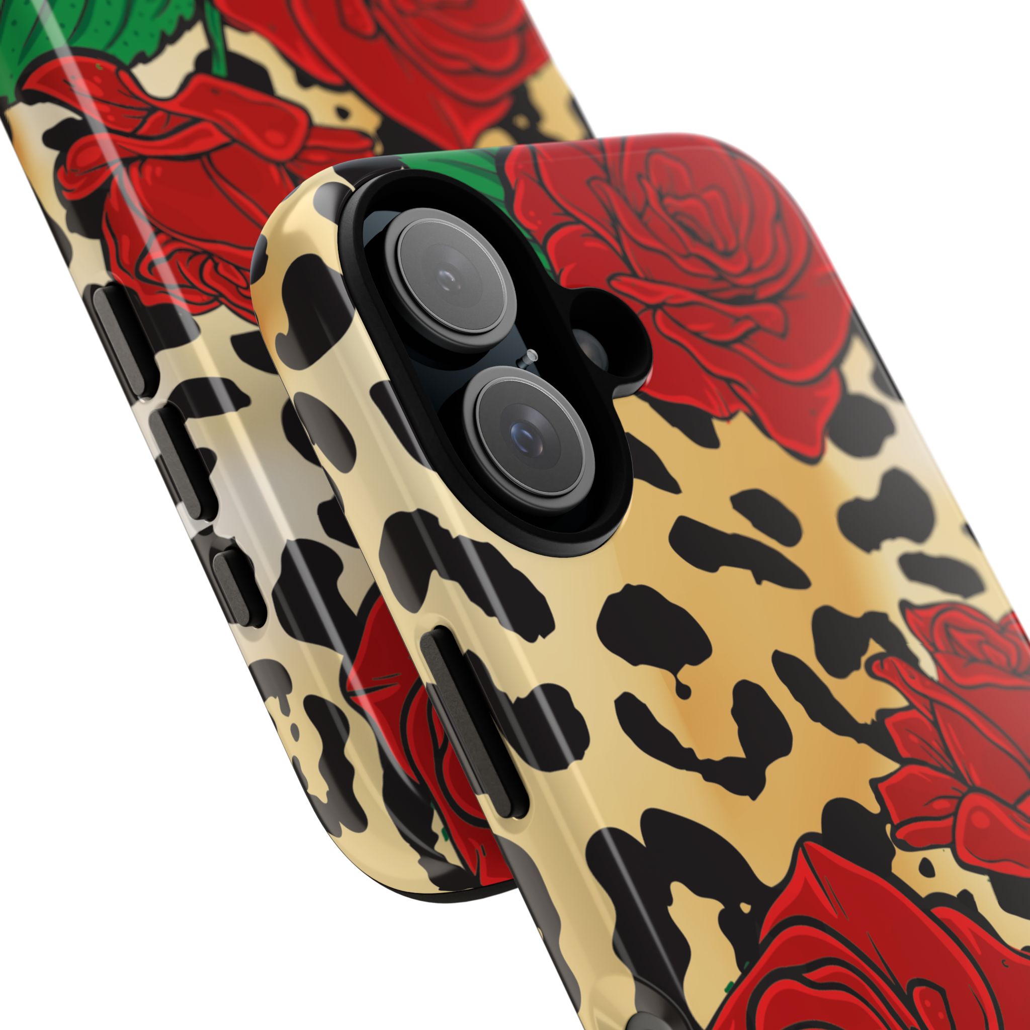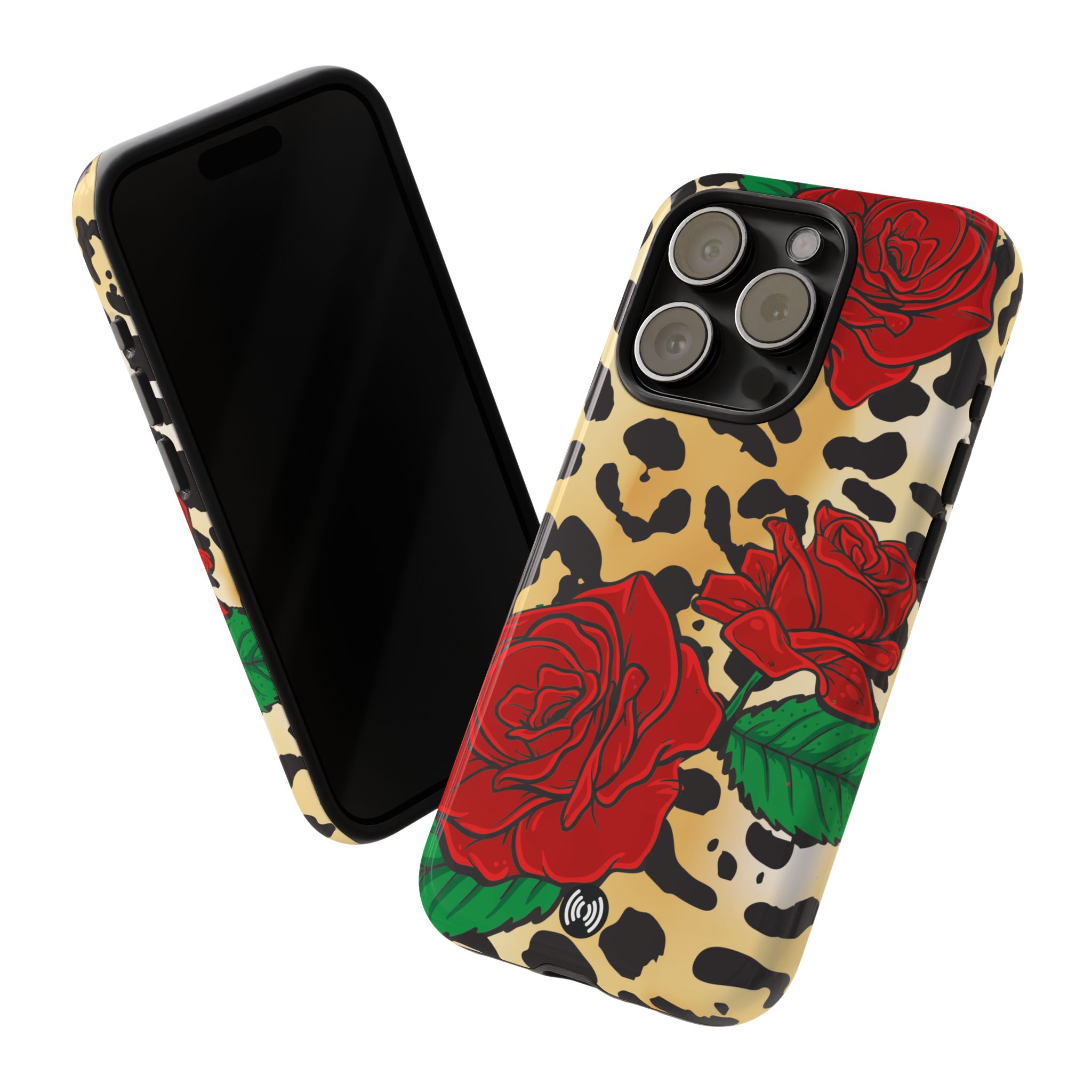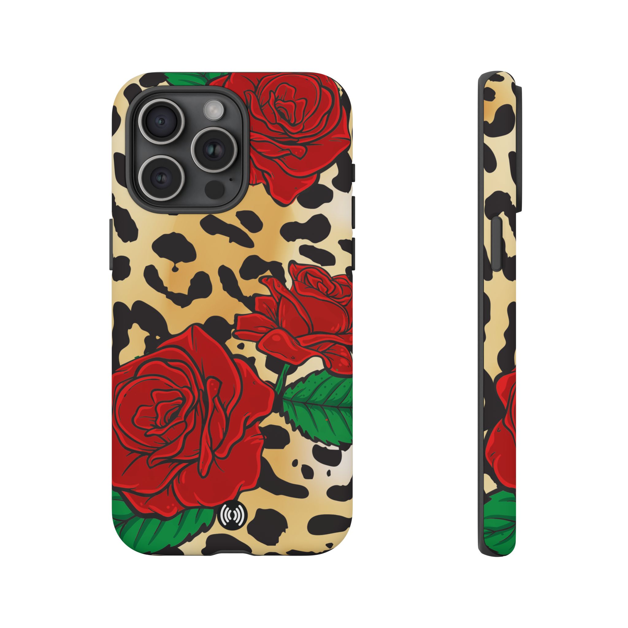 This slim, dual-layer phone case blends bold statement style with dependable everyday protection. Featuring a classic leopard print layered with deep red roses and a striking central emblem, the design feels dramatic, confident, and fashion-forward—made to stand out without sacrificing function.