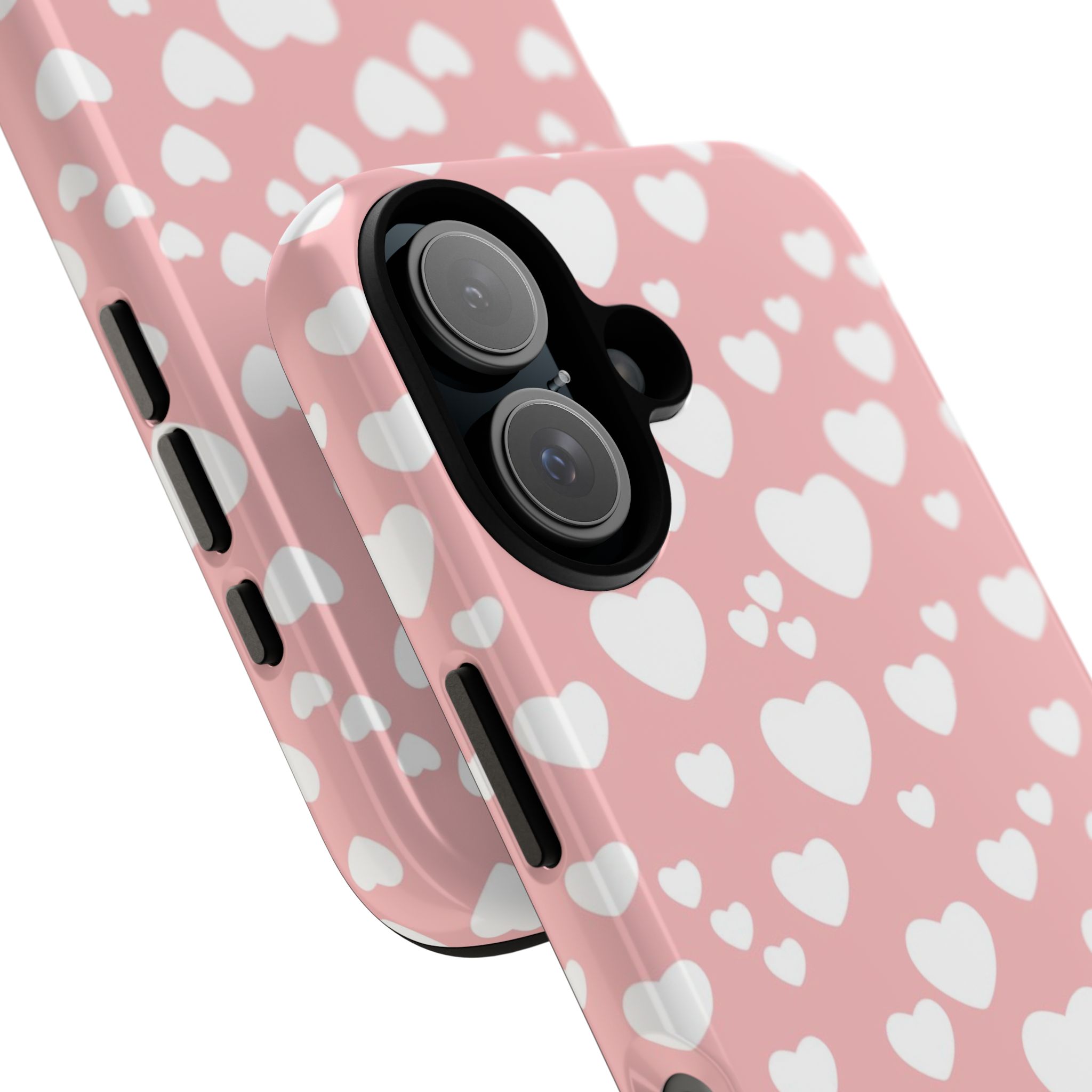A soft, protective phone case dressed in a playful heart pattern that brings a warm, personal touch to everyday carry. The dual-layer construction (polycarbonate shell with a TPU silicone liner) cushions against bumps and drops while keeping a slim profile. The matte/glossy printed finish resists outdoor fading with UV protection, and clear port openings keep charging and audio simple. Lightweight and tactile, this case feels like a little reminder of affection whenever you pick up your phone — great for days out, cozy nights in, or when you want your device to match a sweet, feminine aesthetic.