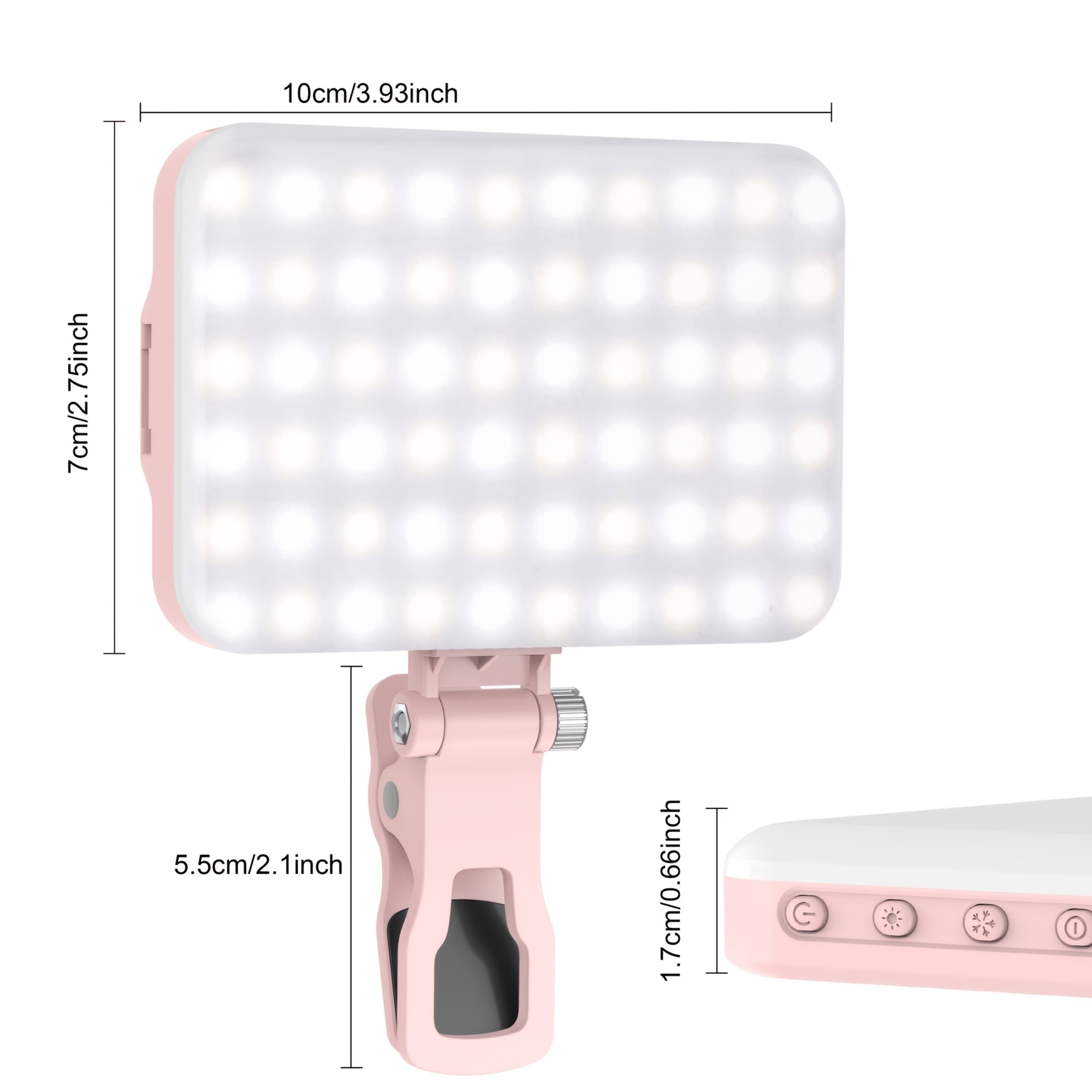 Shine anywhere with this Portable Rechargeable Selfie Light featuring a powerful 2200mAh battery and 3 adjustable lighting modes. Designed with a sturdy clip, it attaches easily to smartphones, tablets, laptops, and mirrors, giving you bright, even lighting for selfies, makeup looks, Zoom meetings, and video recordings. Lightweight and travel-ready, it’s available in Pink, Black, and White — making it the perfect everyday beauty and creator accessory for anyone who needs clean lighting on demand.