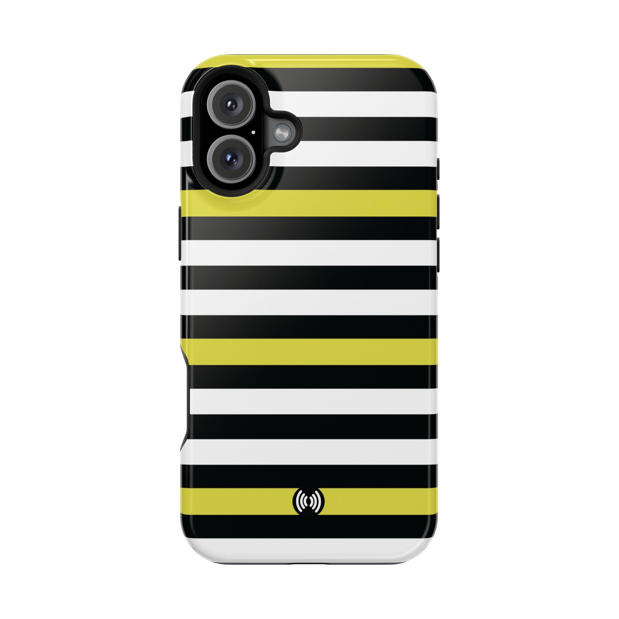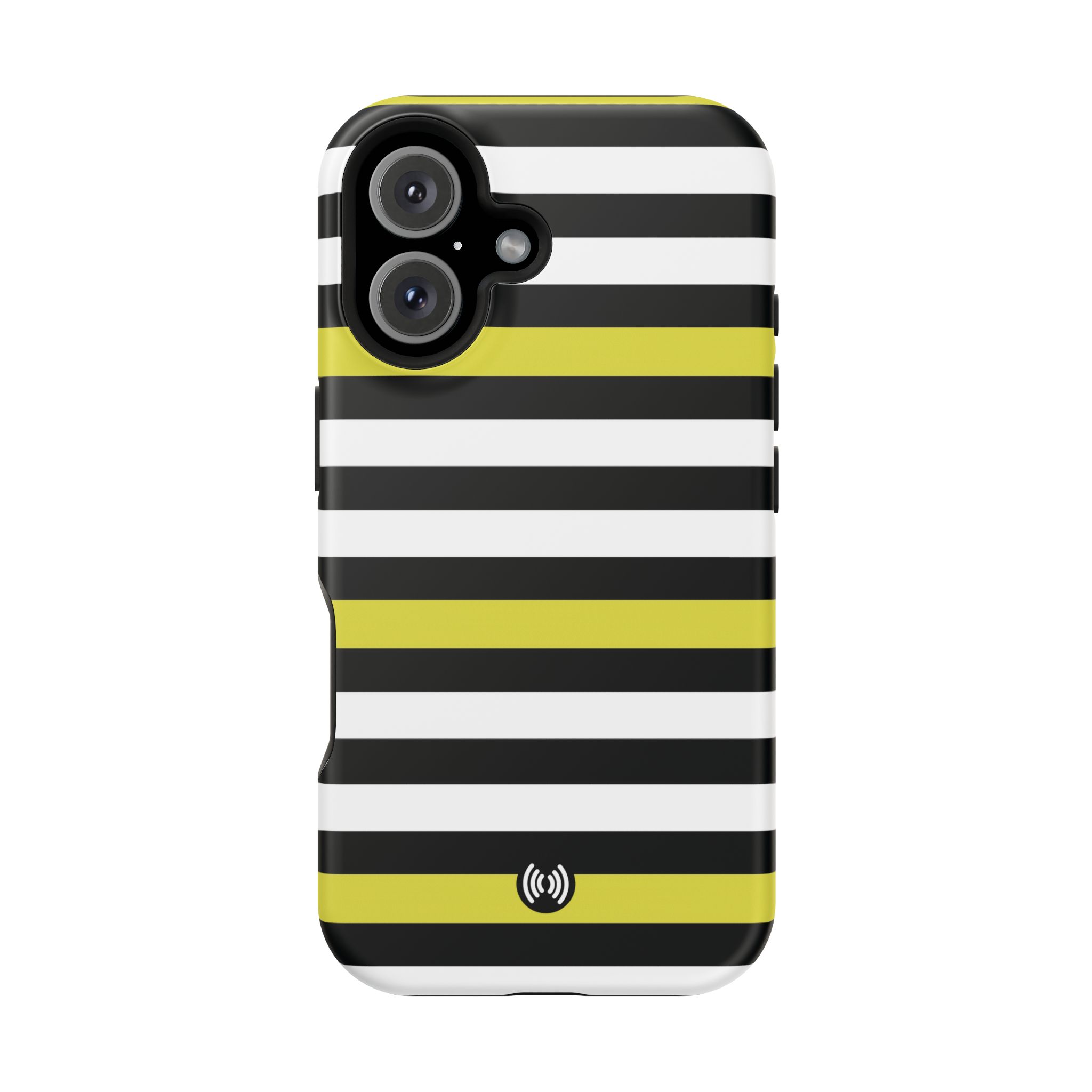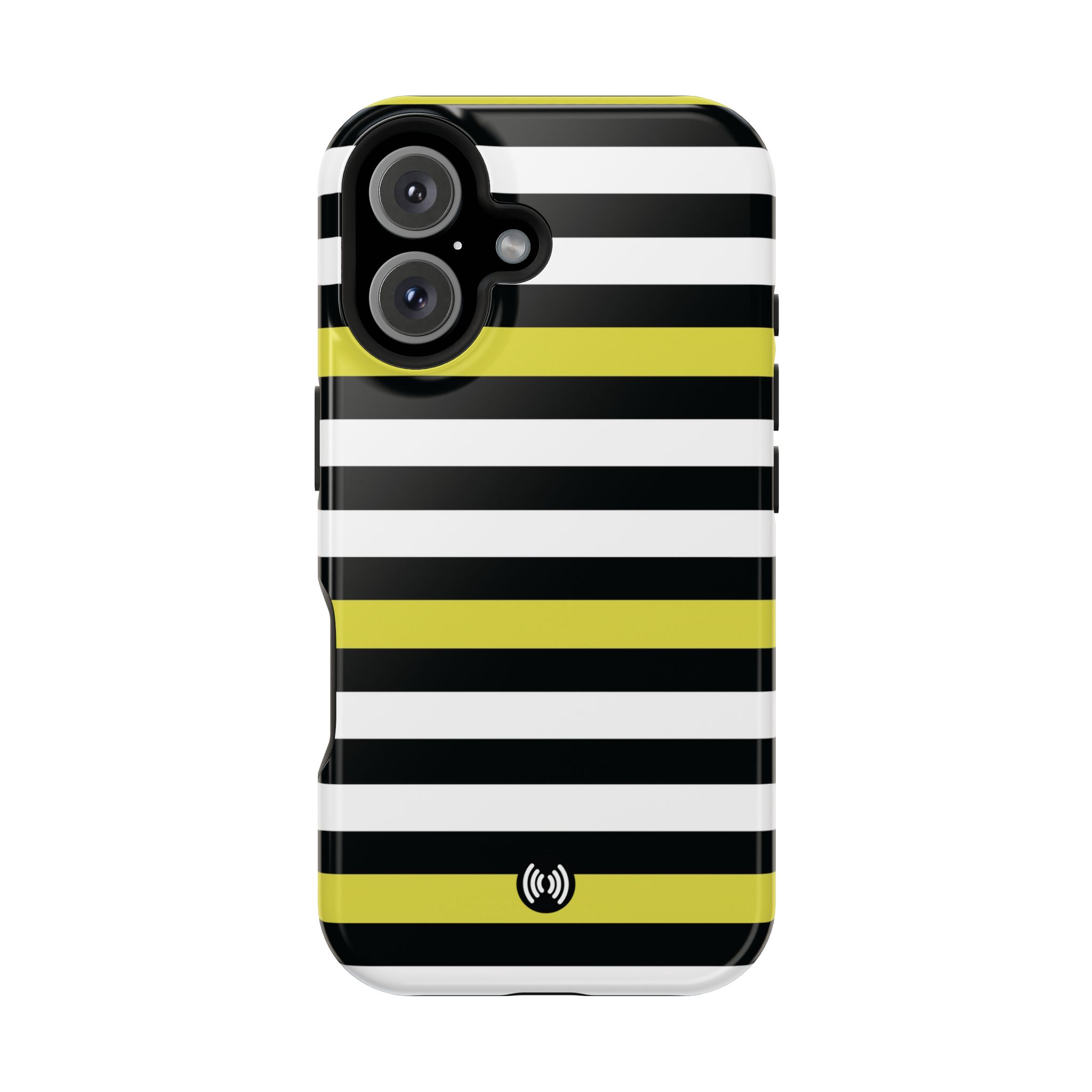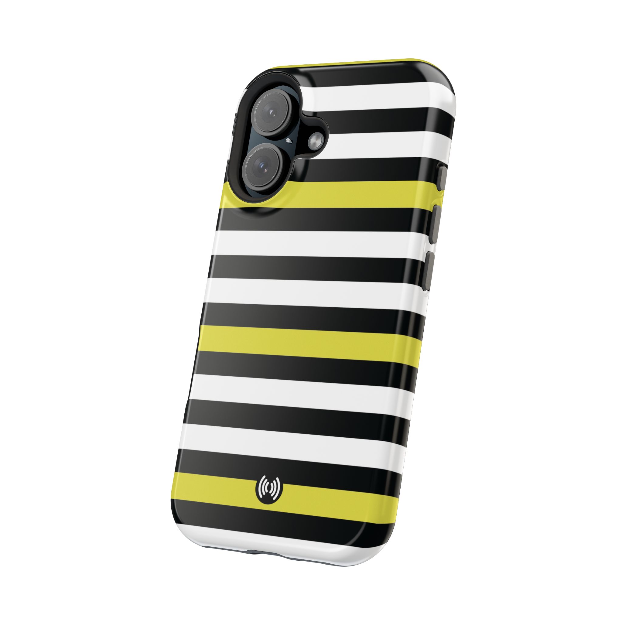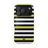 Carry a confident, modern look in your pocket with this impact-resistant phone case. The bold black and white stripes, punctuated by vivid yellow bands, read like a little design statement — crisp, glossy lines that stand out without shouting. The case hugs your phone with a rigid polycarbonate shell and a cushioned TPU inner liner, giving a satisfying snap-on fit and dependable protection against daily knocks. Smooth glossy or refined matte finishes keep the artwork bright and full-bleed across the exterior. Integrated magnets add MagSafe®-style convenience for compatible accessories, while the durable dual-layer construction resists scratches and light impacts. This is a lively, everyday case for someone who likes clean geometry and a flash of color with practical protection.