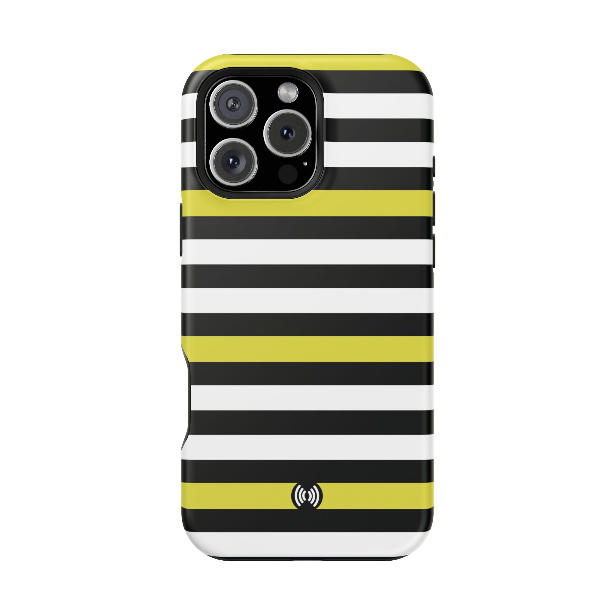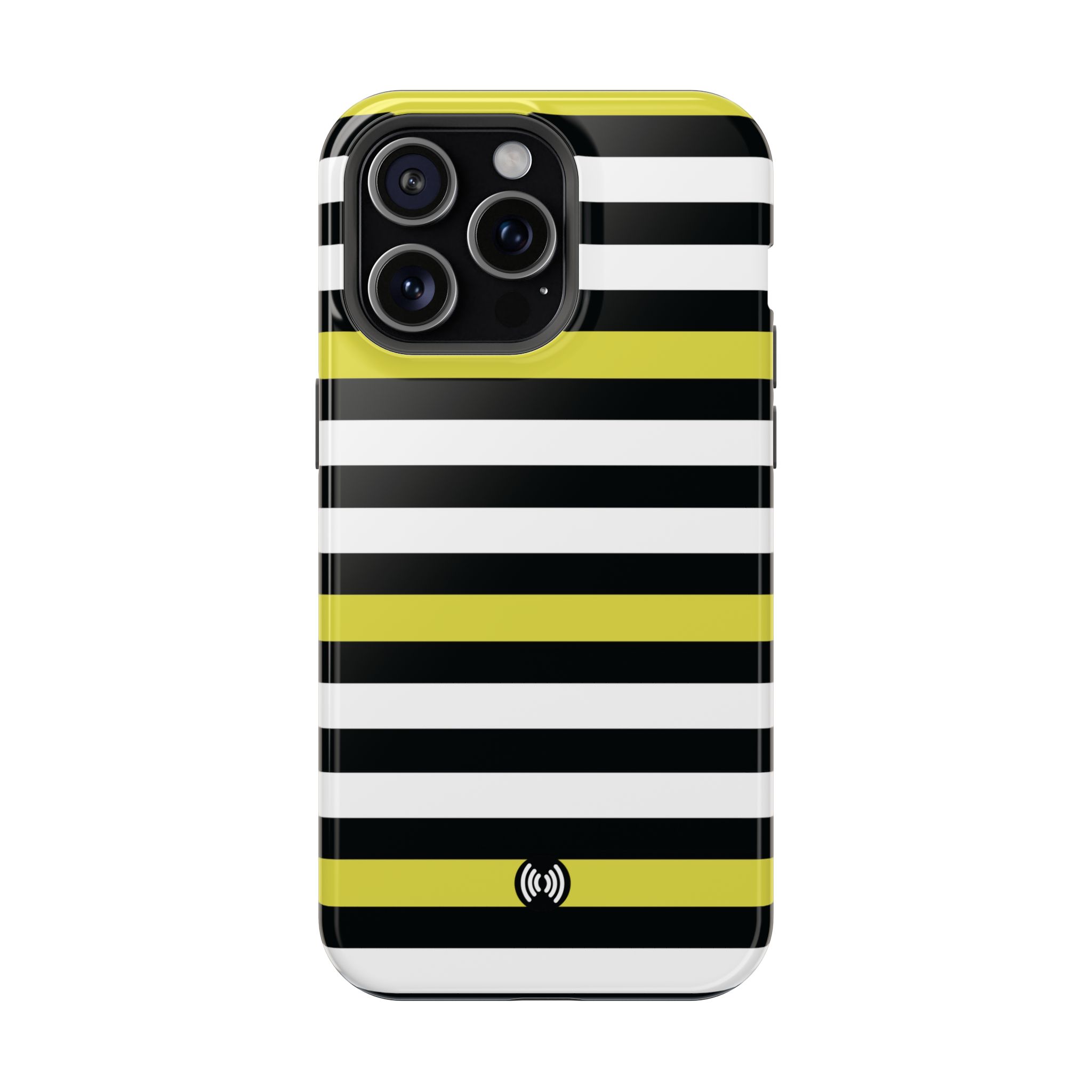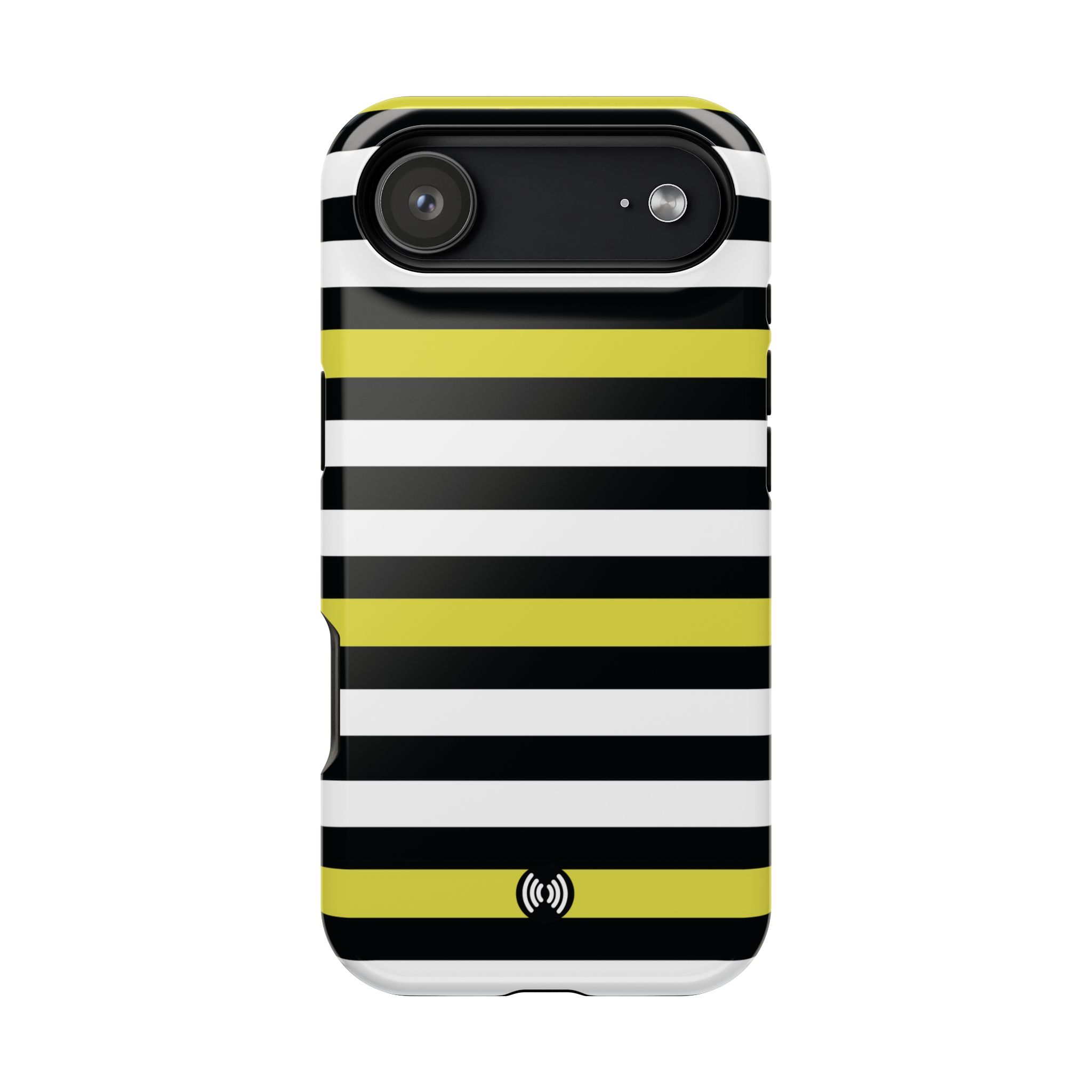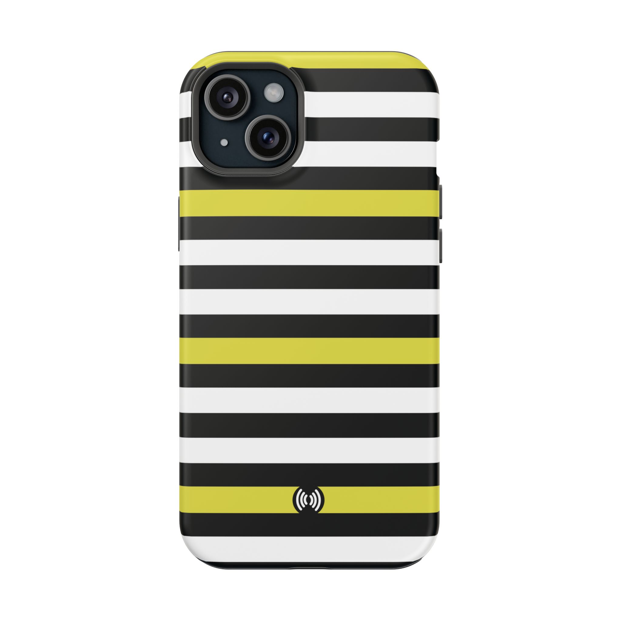 Carry a confident, modern look in your pocket with this impact-resistant phone case. The bold black and white stripes, punctuated by vivid yellow bands, read like a little design statement — crisp, glossy lines that stand out without shouting. The case hugs your phone with a rigid polycarbonate shell and a cushioned TPU inner liner, giving a satisfying snap-on fit and dependable protection against daily knocks. Smooth glossy or refined matte finishes keep the artwork bright and full-bleed across the exterior. Integrated magnets add MagSafe®-style convenience for compatible accessories, while the durable dual-layer construction resists scratches and light impacts. This is a lively, everyday case for someone who likes clean geometry and a flash of color with practical protection.