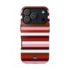 This sturdy, stylish phone case wears bold horizontal stripes in warm reds, soft rose, and earthy browns—graphic, modern, and confidently expressive.