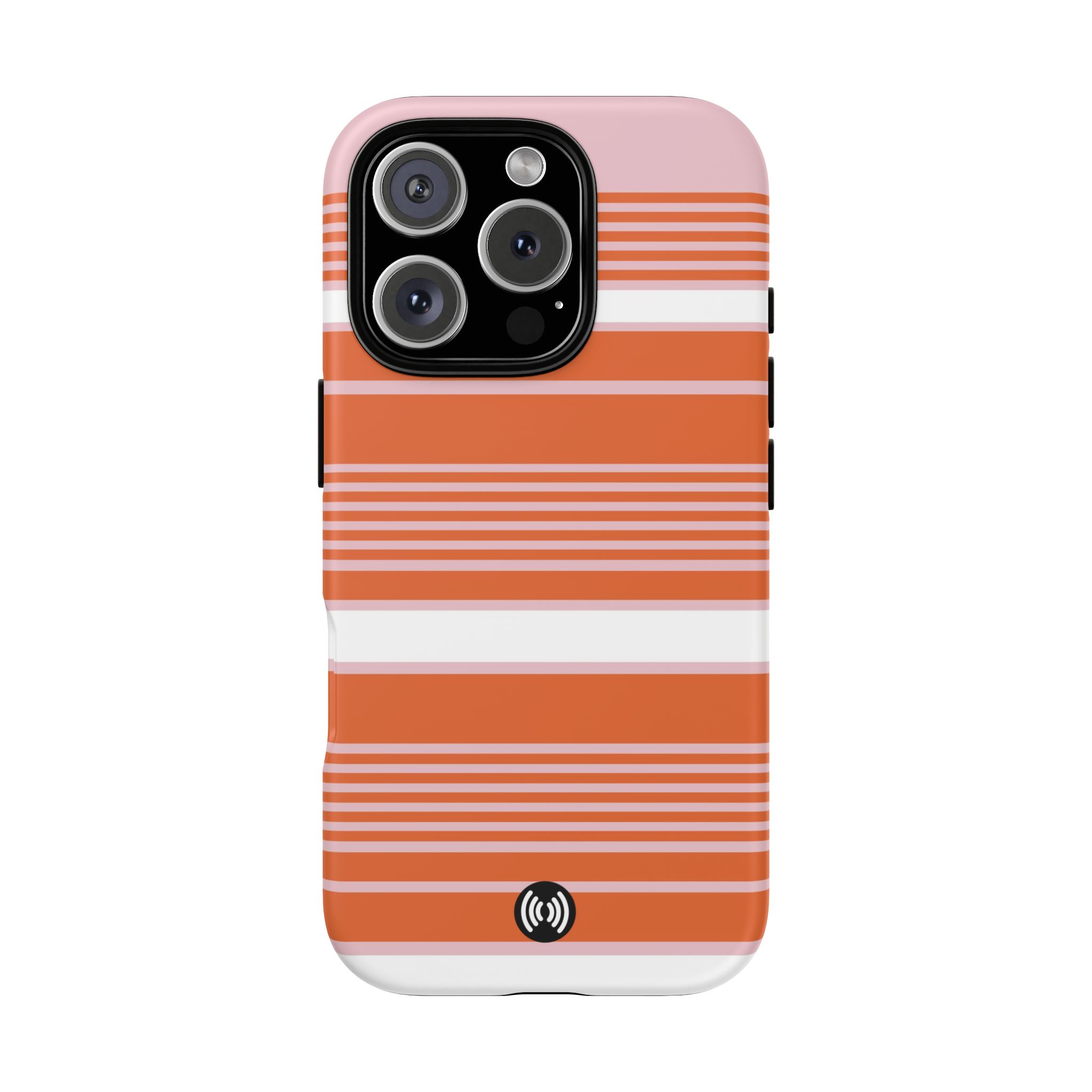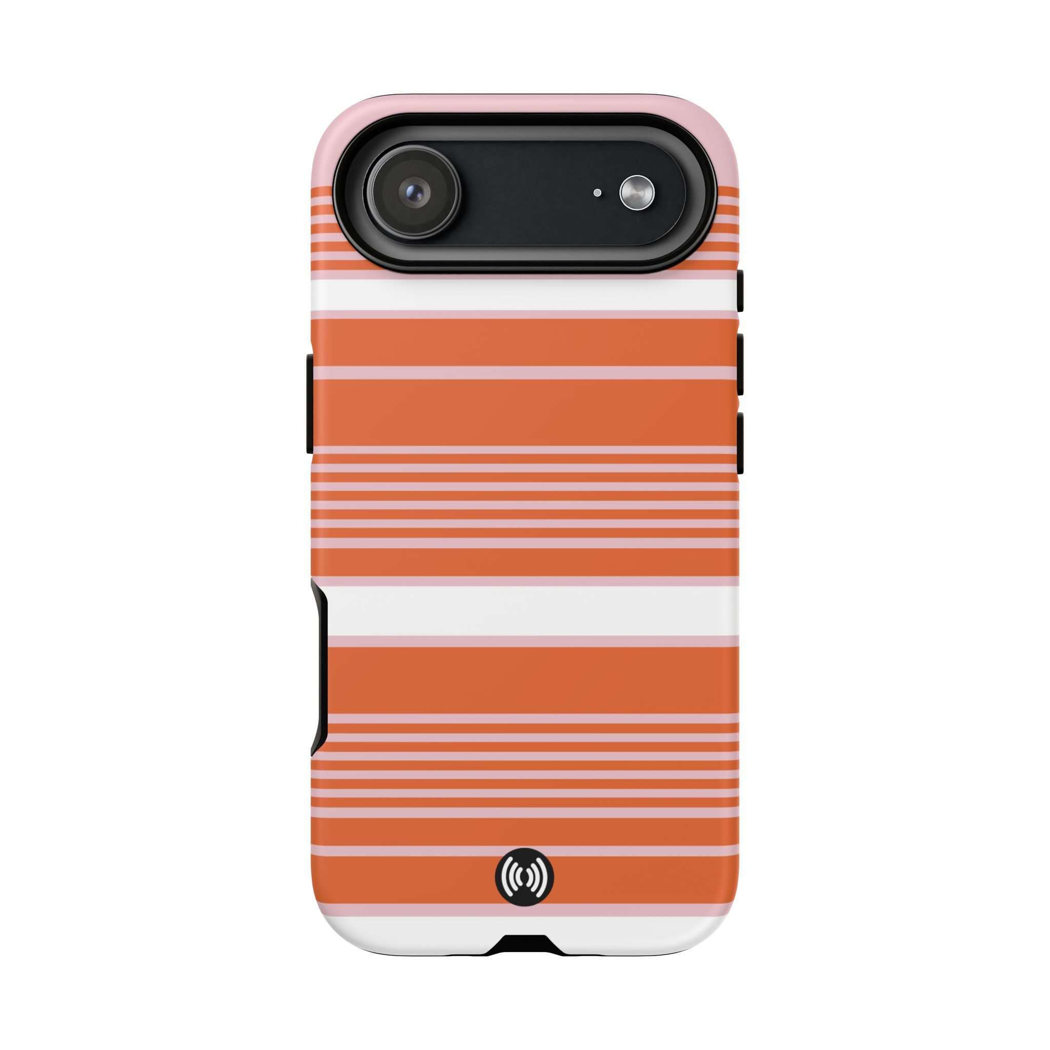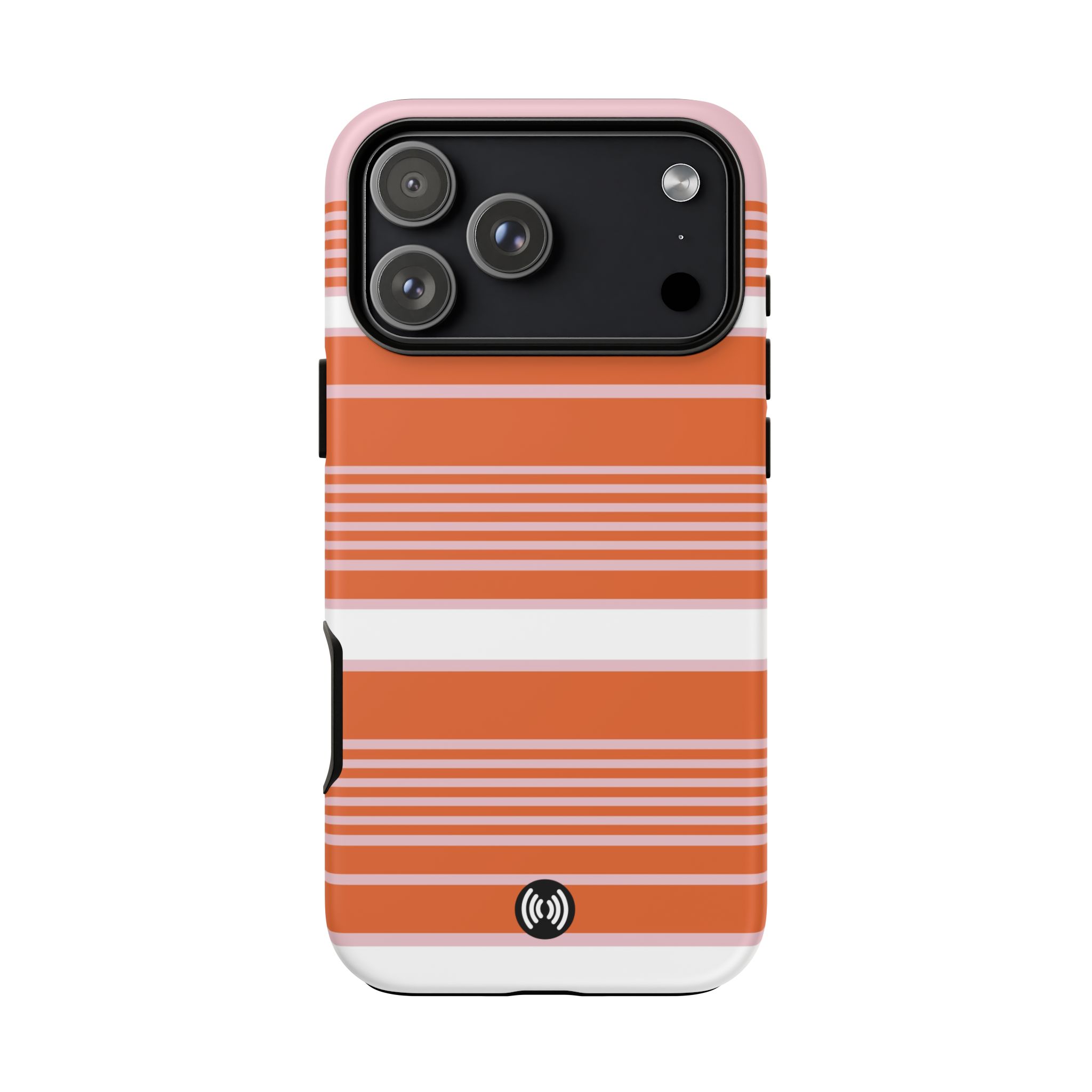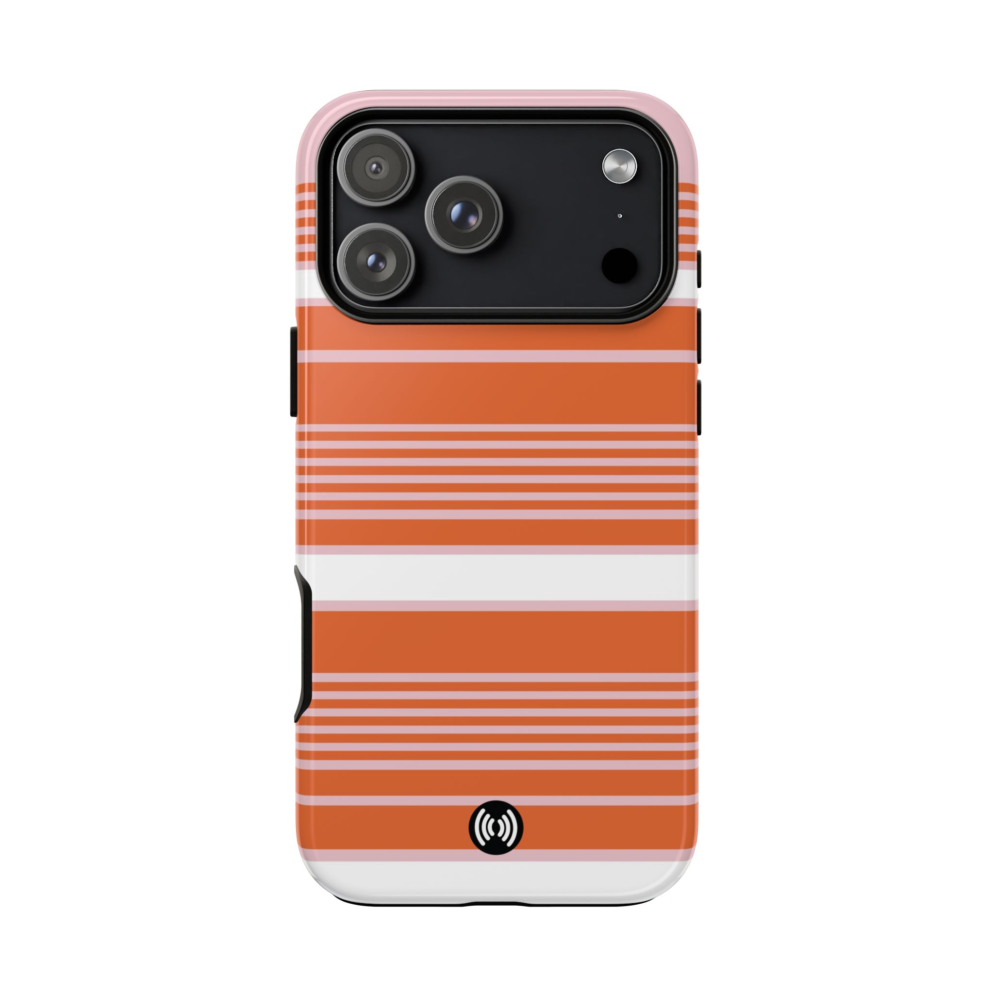 This slim, dual-layer phone case blends everyday toughness with a warm, modern stripe design. Smooth polycarbonate outer shell and a shock-absorbing TPU silicone liner work together to protect against drops and scuffs while keeping wireless charging available. The finish is available in glossy or matte, and UV protection helps the colors stay vibrant outdoors. Thoughtful cutouts keep ports open and accessible, and the lightweight profile slips easily into a pocket or bag. Itās the kind of case that feels reliable in hand and looks calm on the outsideāan honest companion for daily life.