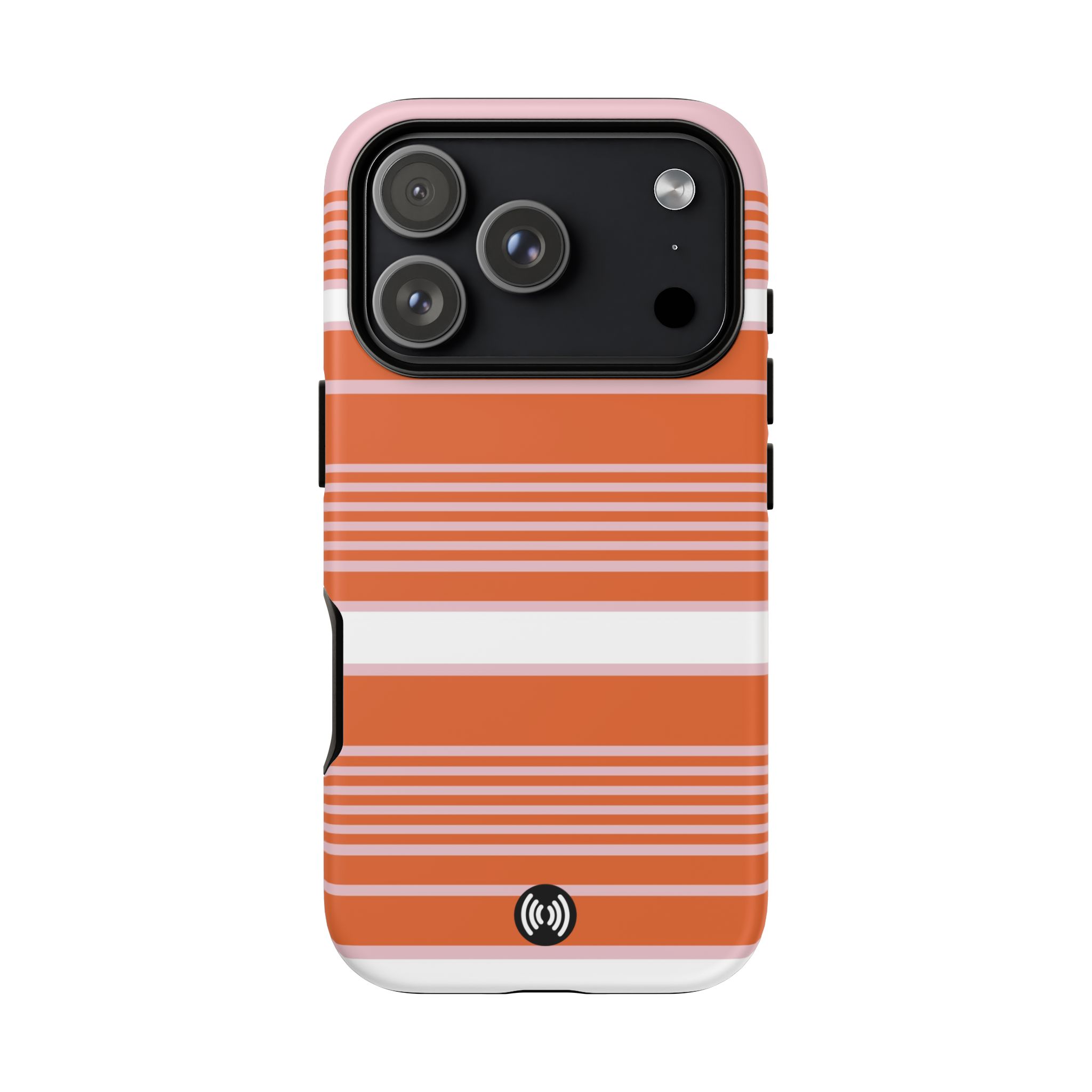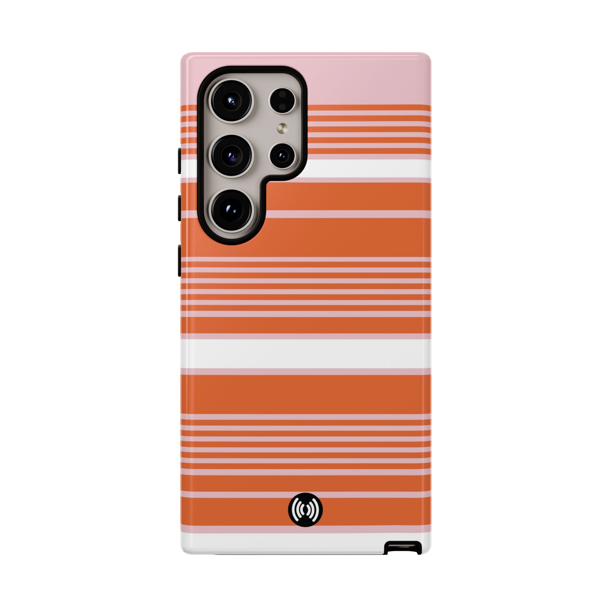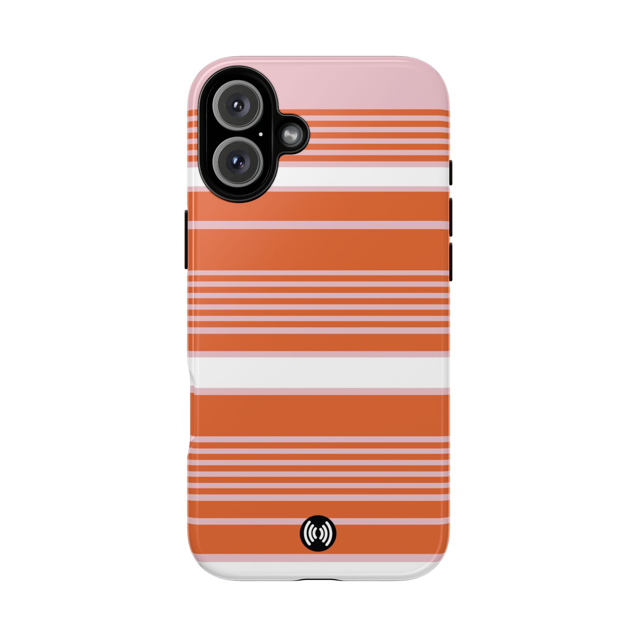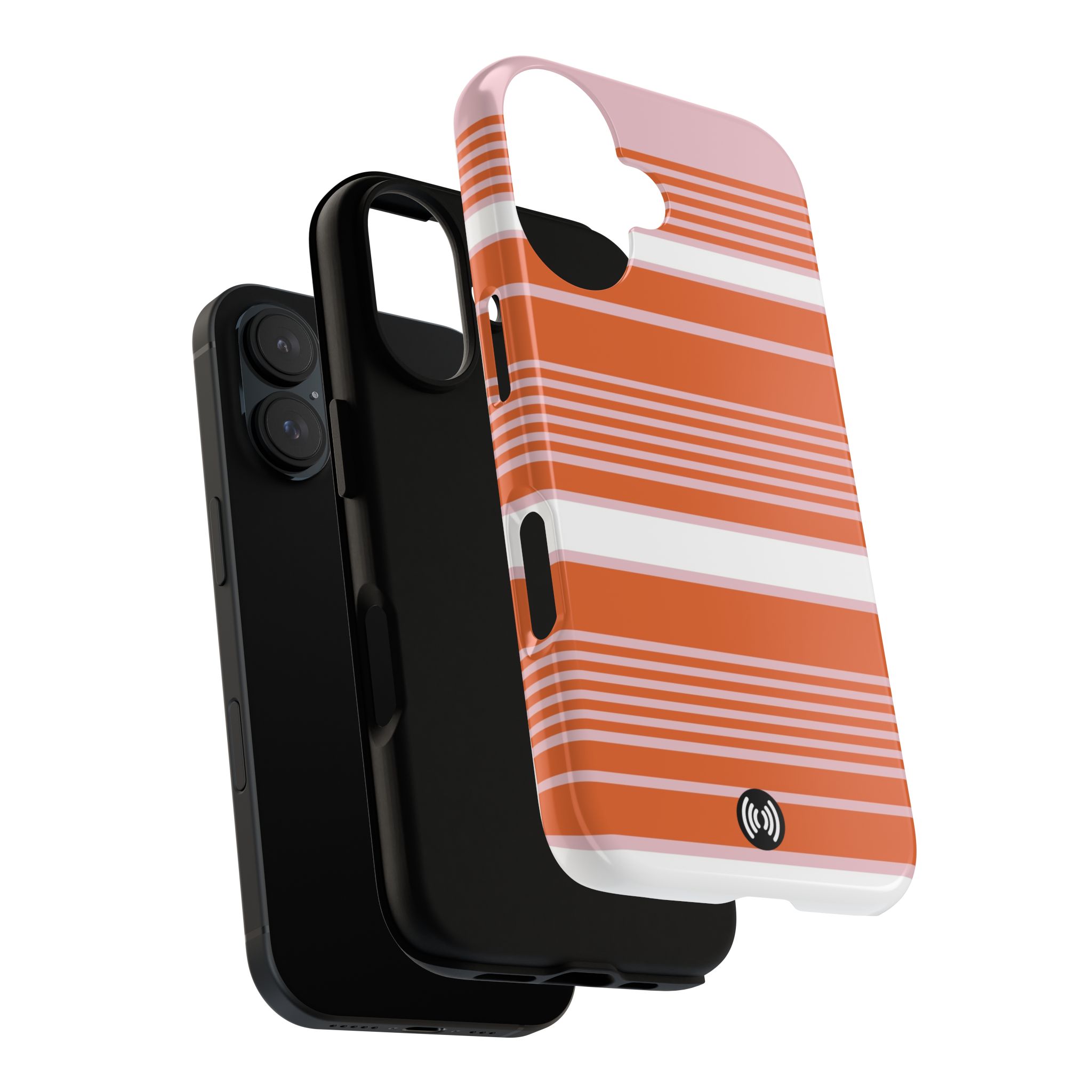 This slim, dual-layer phone case blends everyday toughness with a warm, modern stripe design. Smooth polycarbonate outer shell and a shock-absorbing TPU silicone liner work together to protect against drops and scuffs while keeping wireless charging available. The finish is available in glossy or matte, and UV protection helps the colors stay vibrant outdoors. Thoughtful cutouts keep ports open and accessible, and the lightweight profile slips easily into a pocket or bag. Itās the kind of case that feels reliable in hand and looks calm on the outsideāan honest companion for daily life.
