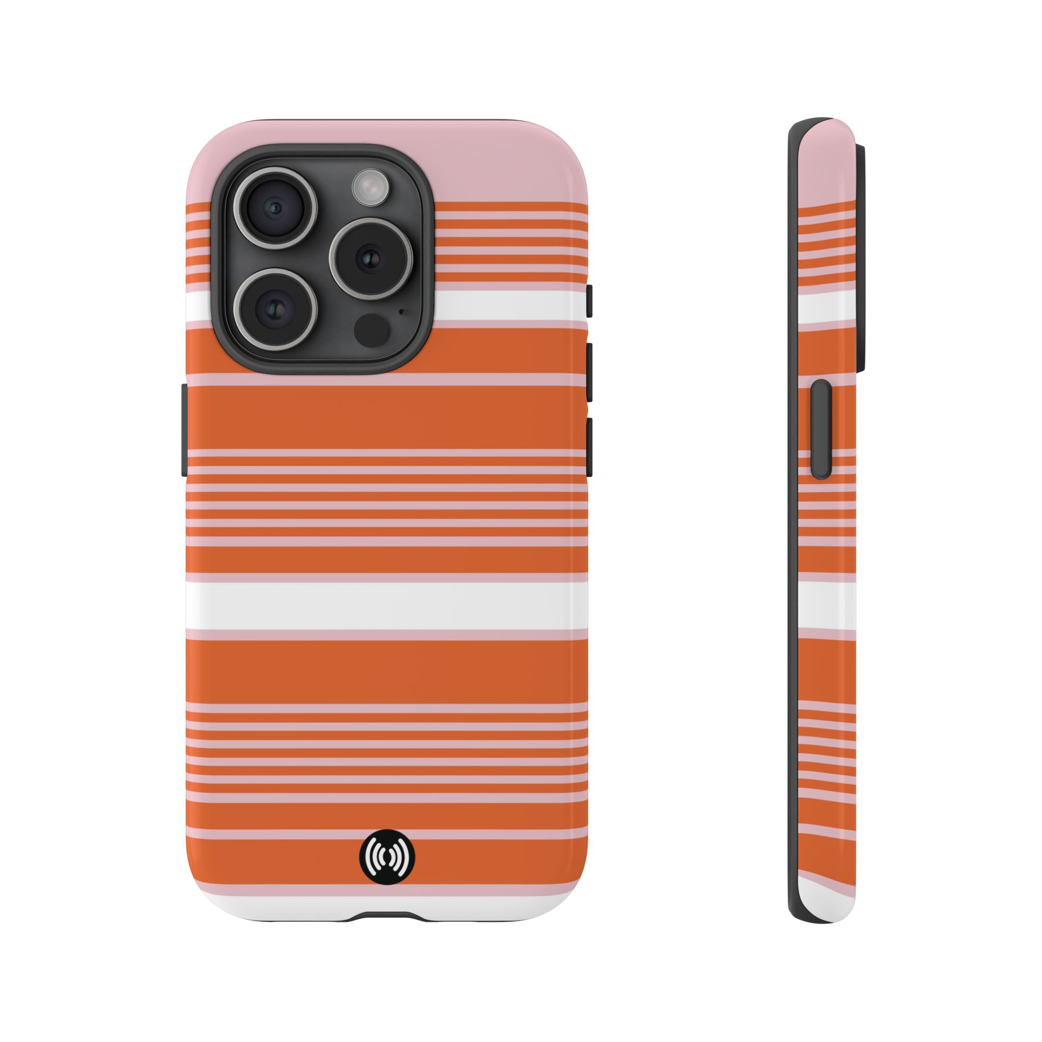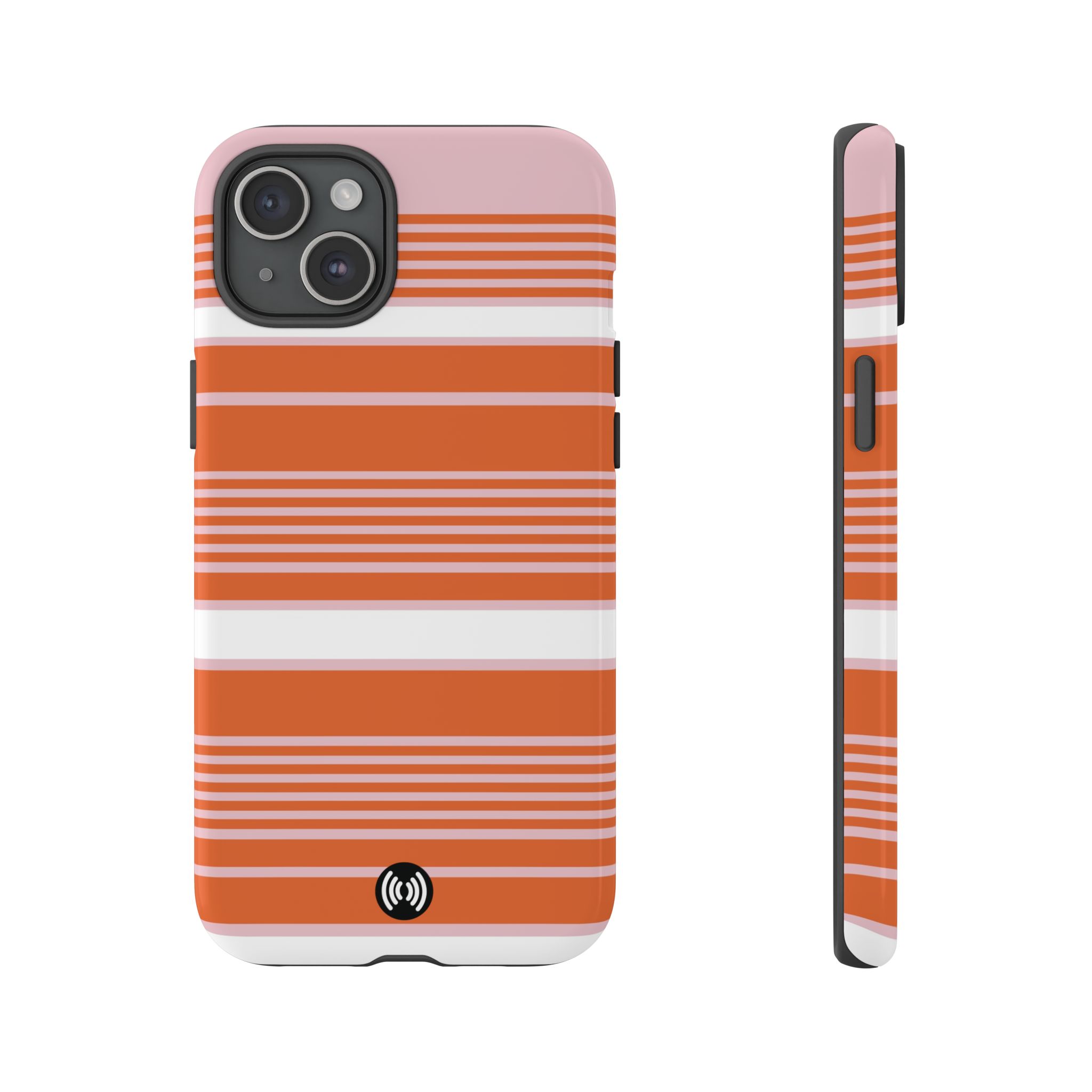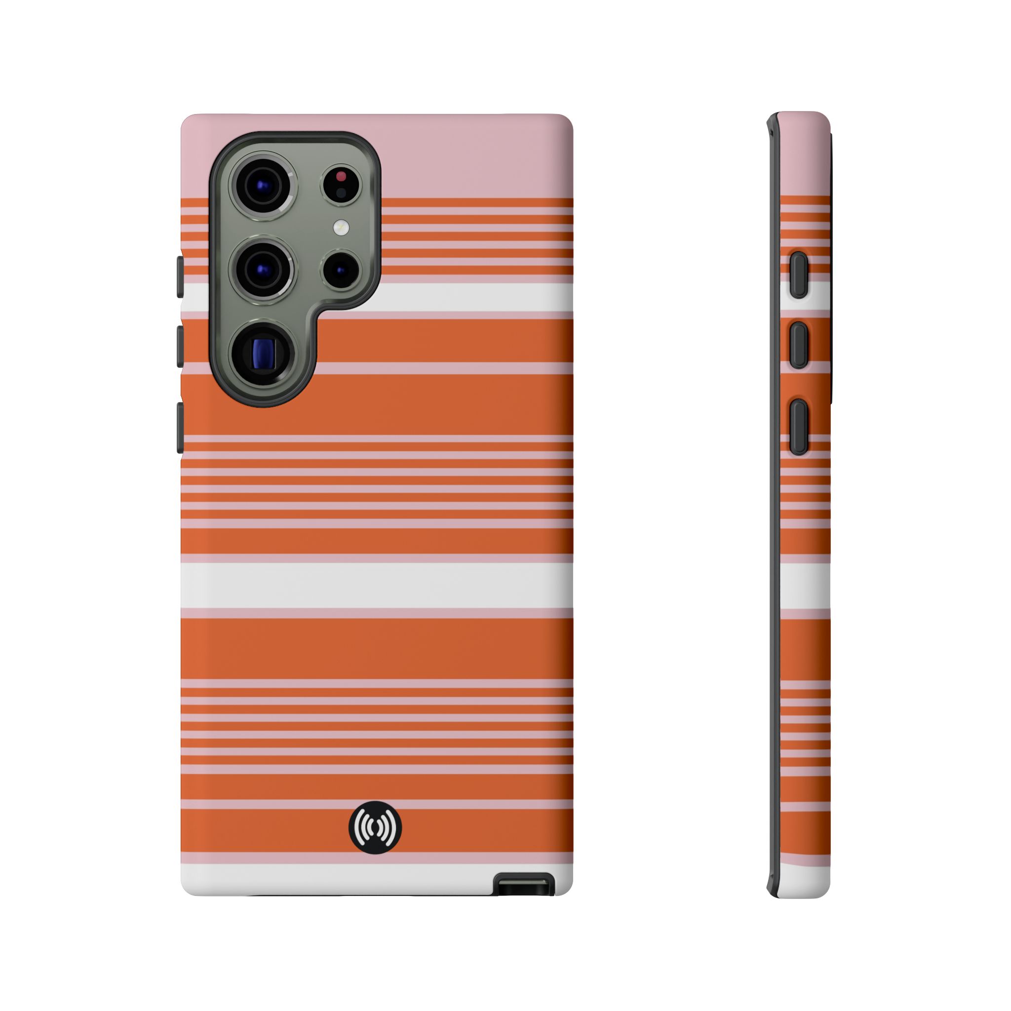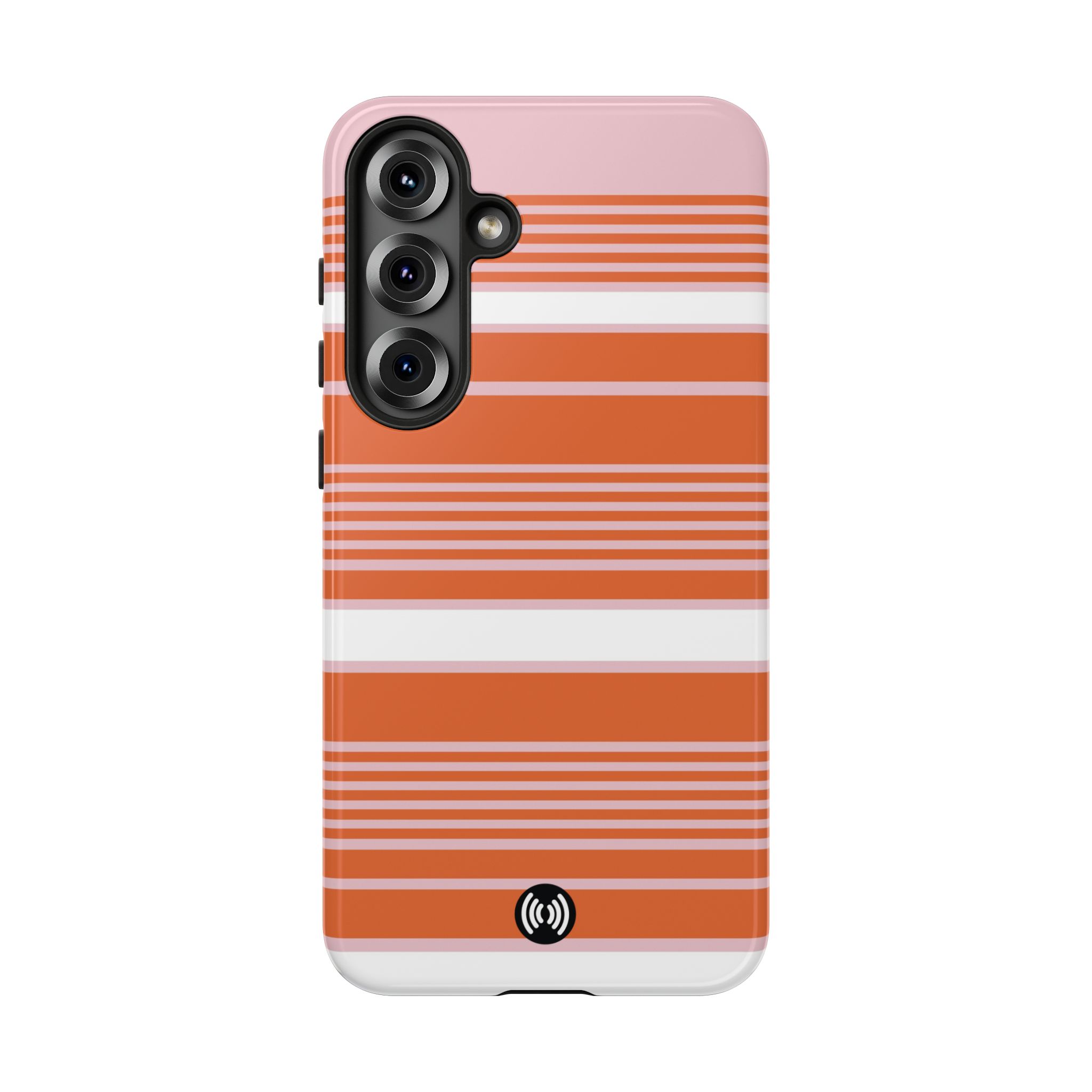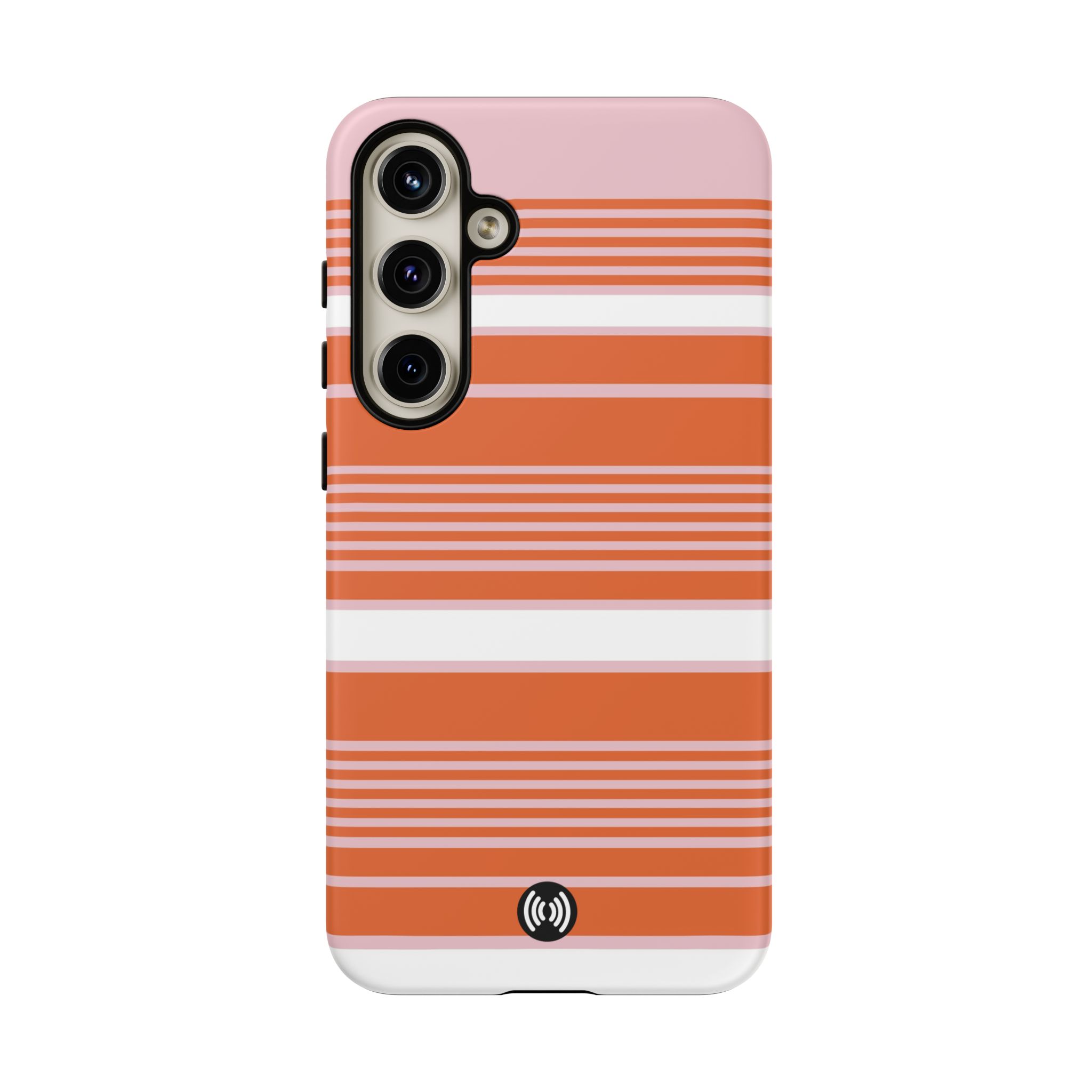 This slim, dual-layer phone case blends everyday toughness with a warm, modern stripe design. Smooth polycarbonate outer shell and a shock-absorbing TPU silicone liner work together to protect against drops and scuffs while keeping wireless charging available. The finish is available in glossy or matte, and UV protection helps the colors stay vibrant outdoors. Thoughtful cutouts keep ports open and accessible, and the lightweight profile slips easily into a pocket or bag. Itās the kind of case that feels reliable in hand and looks calm on the outsideāan honest companion for daily life.