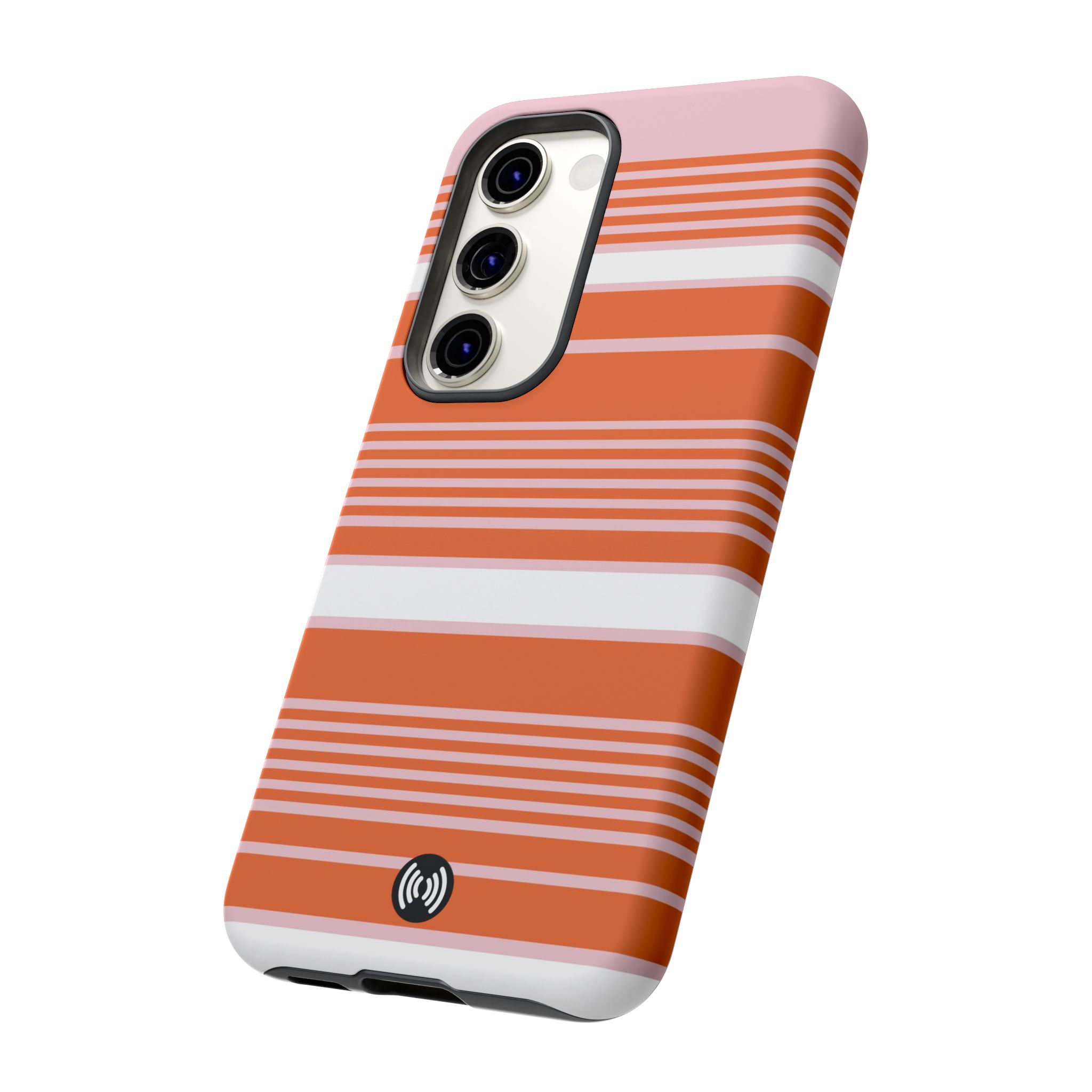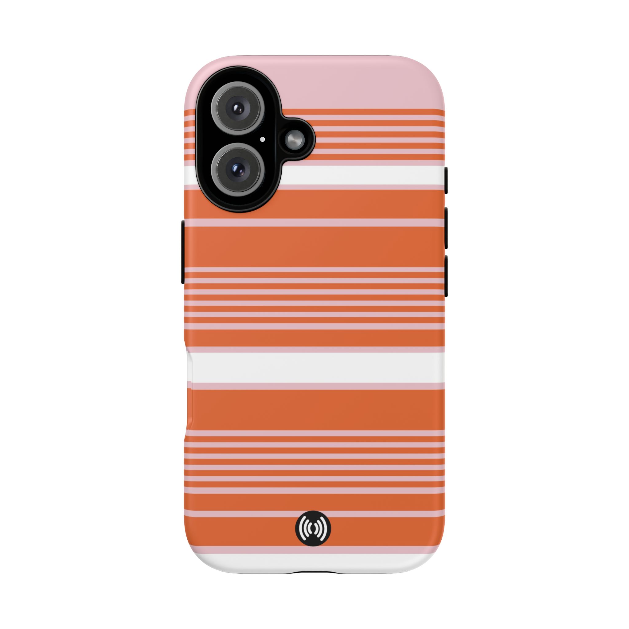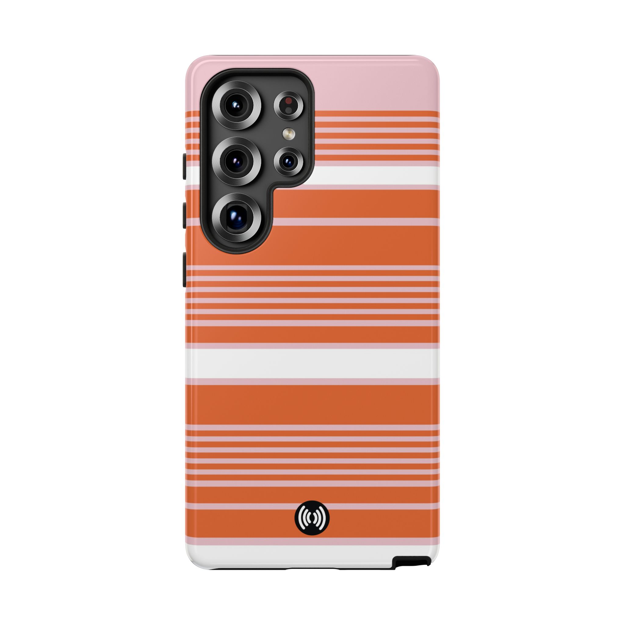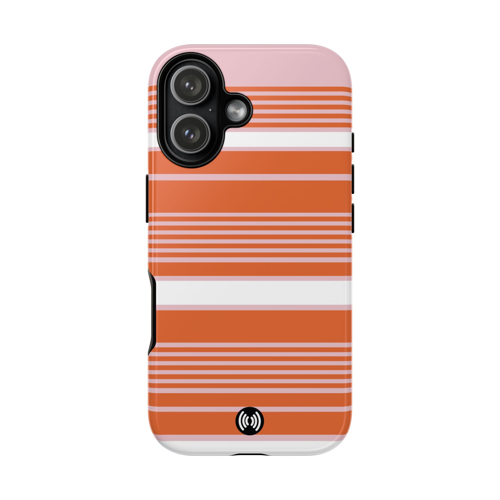This slim, dual-layer phone case blends everyday toughness with a warm, modern stripe design. Smooth polycarbonate outer shell and a shock-absorbing TPU silicone liner work together to protect against drops and scuffs while keeping wireless charging available. The finish is available in glossy or matte, and UV protection helps the colors stay vibrant outdoors. Thoughtful cutouts keep ports open and accessible, and the lightweight profile slips easily into a pocket or bag. Itās the kind of case that feels reliable in hand and looks calm on the outsideāan honest companion for daily life.